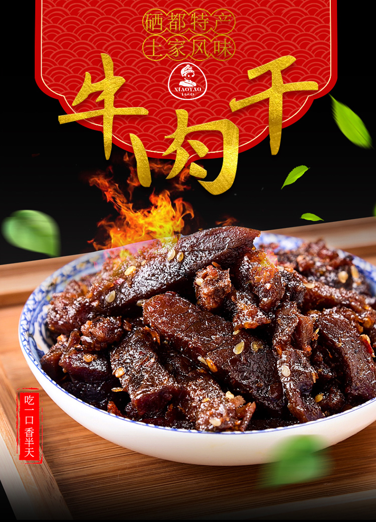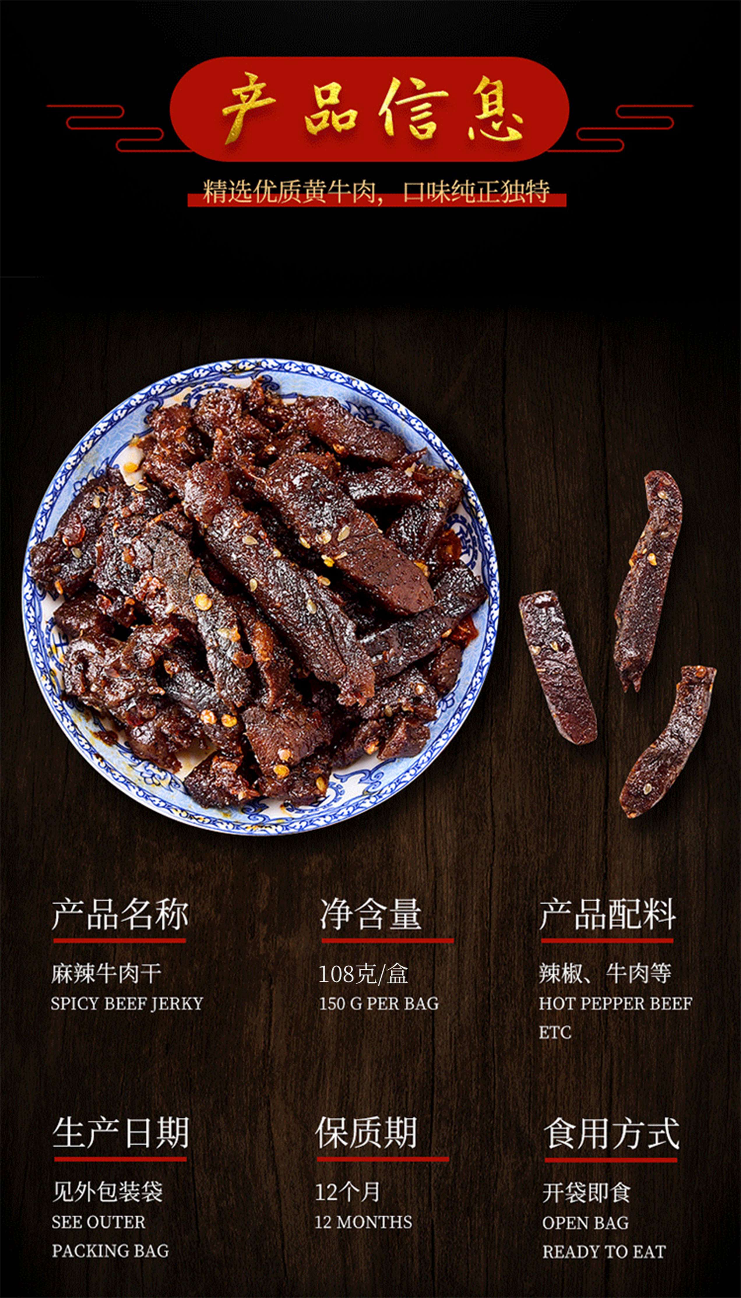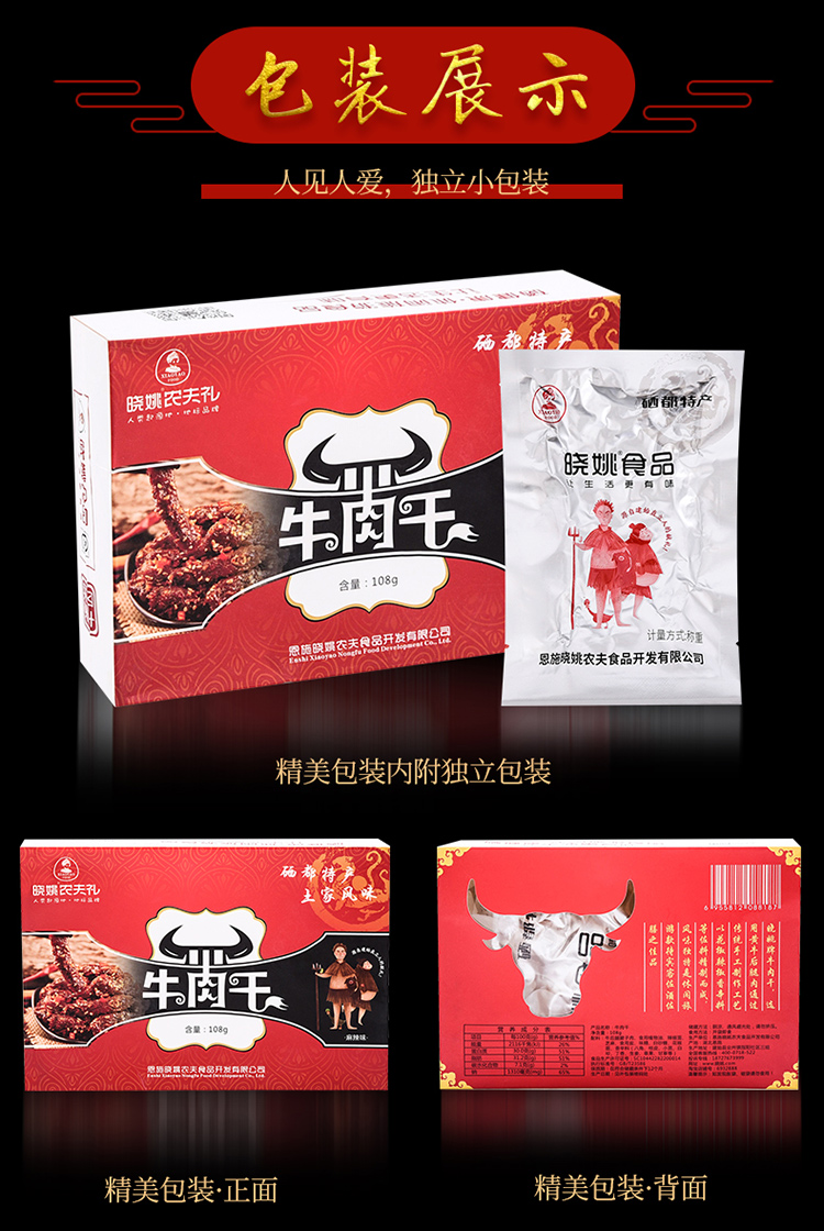 晓姚农夫麻辣牛肉干108g/盒 豆沙色
