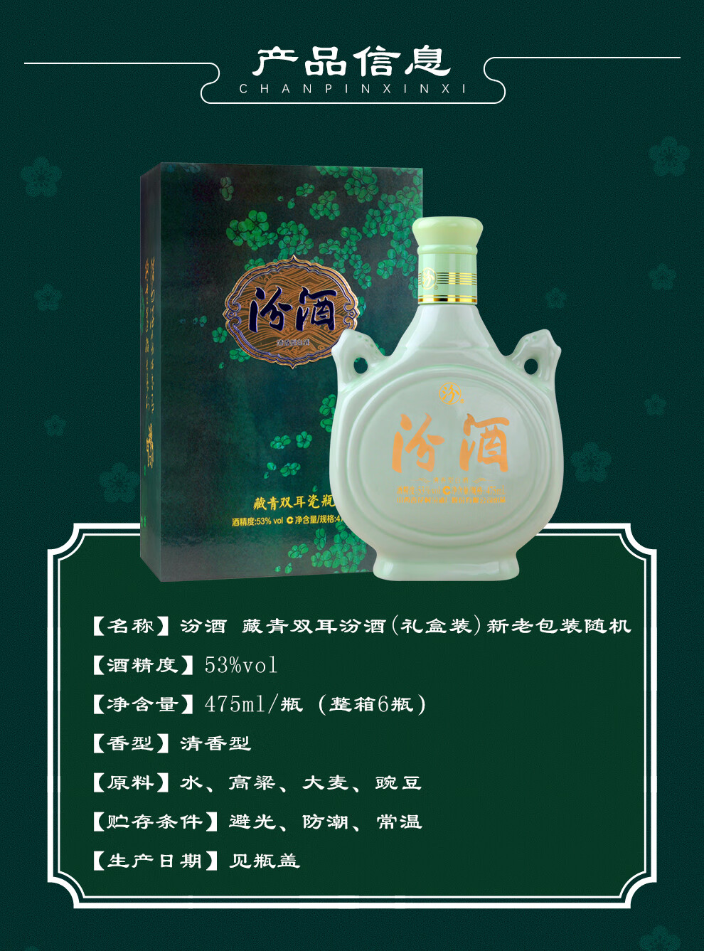 汾酒 藏青双耳 山西杏花村白酒 53度清香型白酒 475ml*1单瓶装
