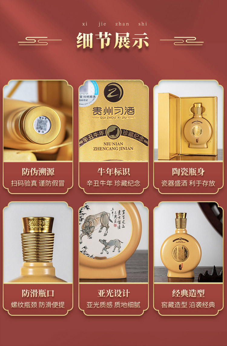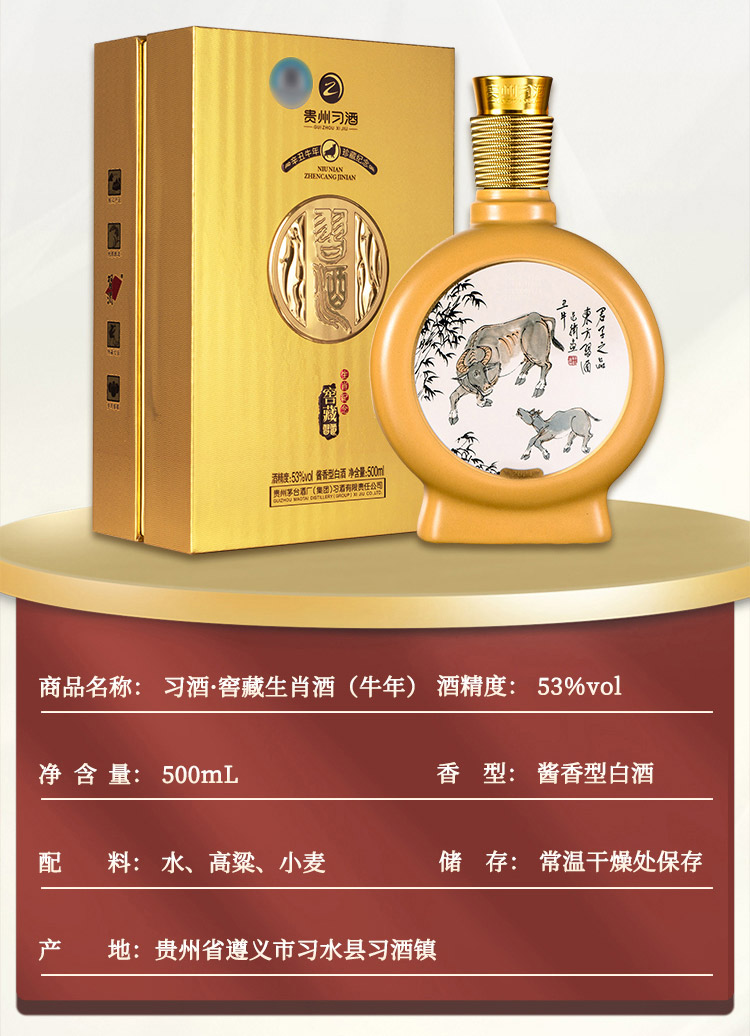 习酒 53度 酱香型白酒 习酒·窖藏生肖酒(牛年) 500ml 单瓶装 鹅仔黄