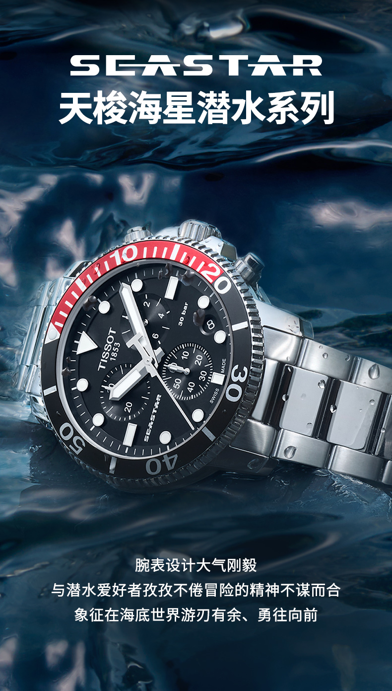 天梭(TISSOT)瑞士手表 海星系列腕表 钢带石英男表T120.417.11.051.01 黑色