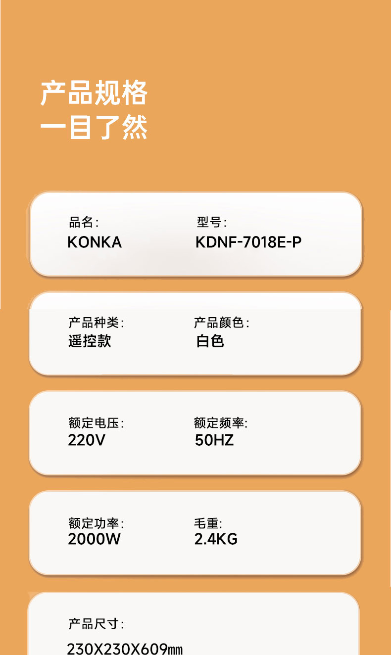 康佳(KONKA)石墨烯取暖器大面积速热取暖扇KDNF-7018E-P(单位:台) 白色