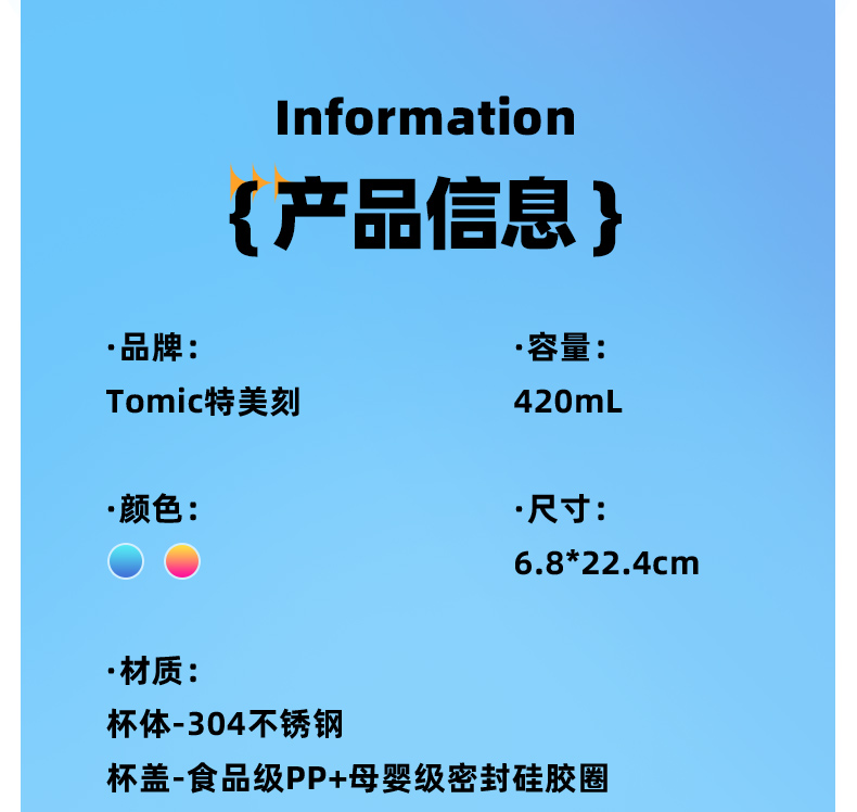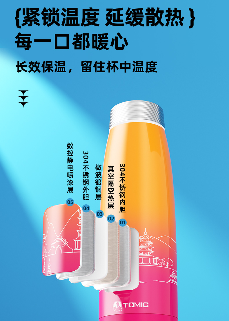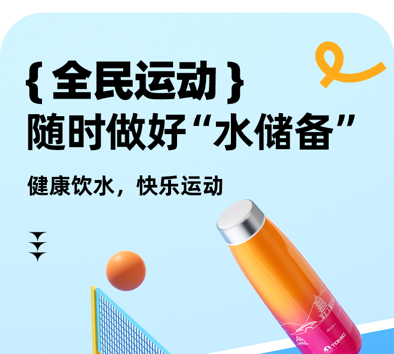 tomic特美刻保温杯304不锈钢男女亚运会指定水杯水壶助力亚运款 活力蓝 蓝色