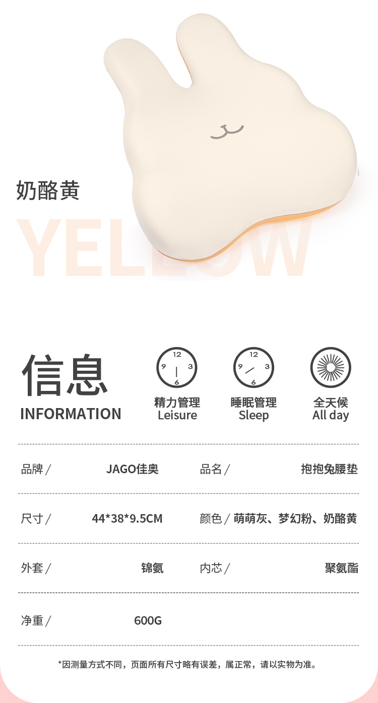 佳奥 抱抱兔腰垫奶酪黄 230606J0100MY1(单位:个) 黄色