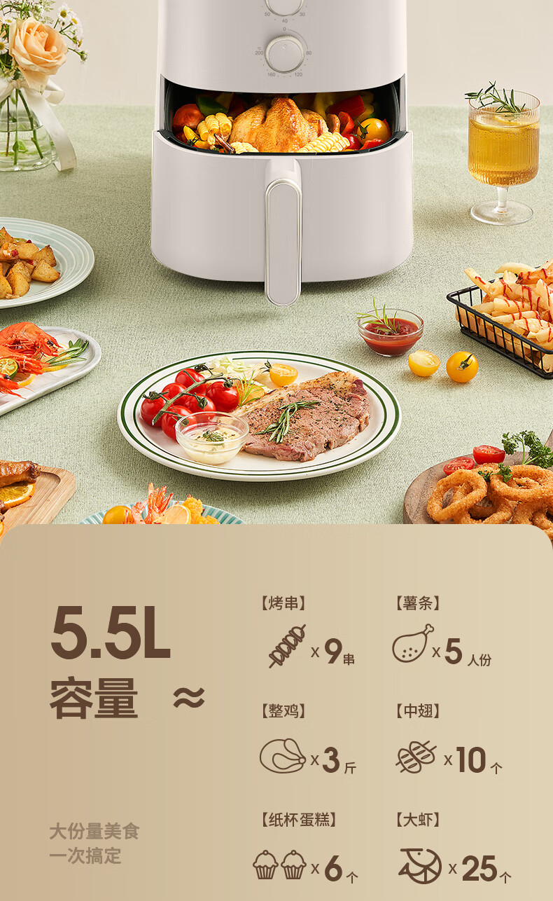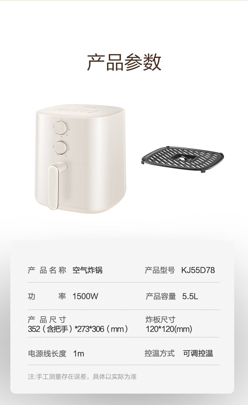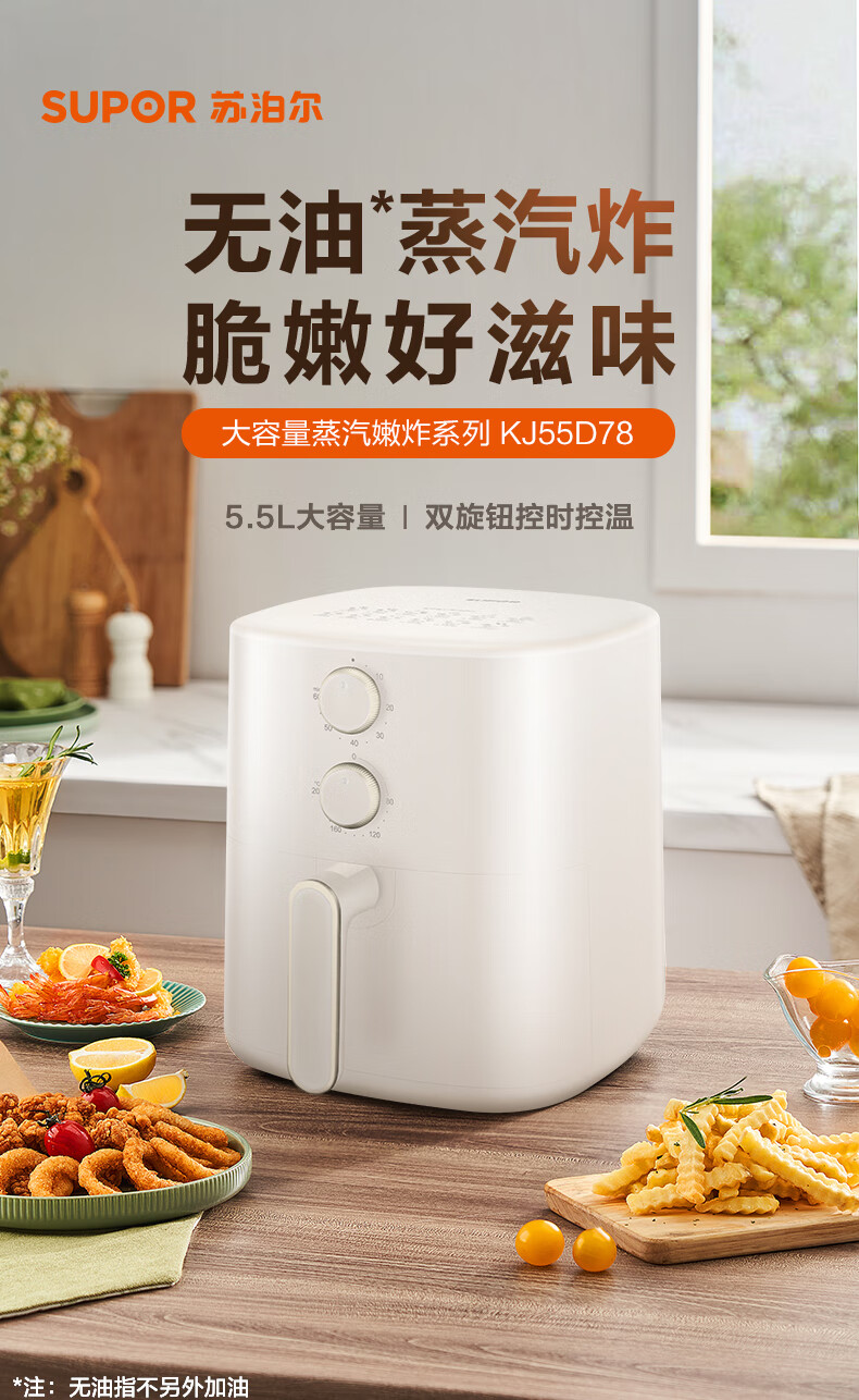 苏泊尔 (SUPOR)KJ55D78 空气炸锅5.5L/台 米黄