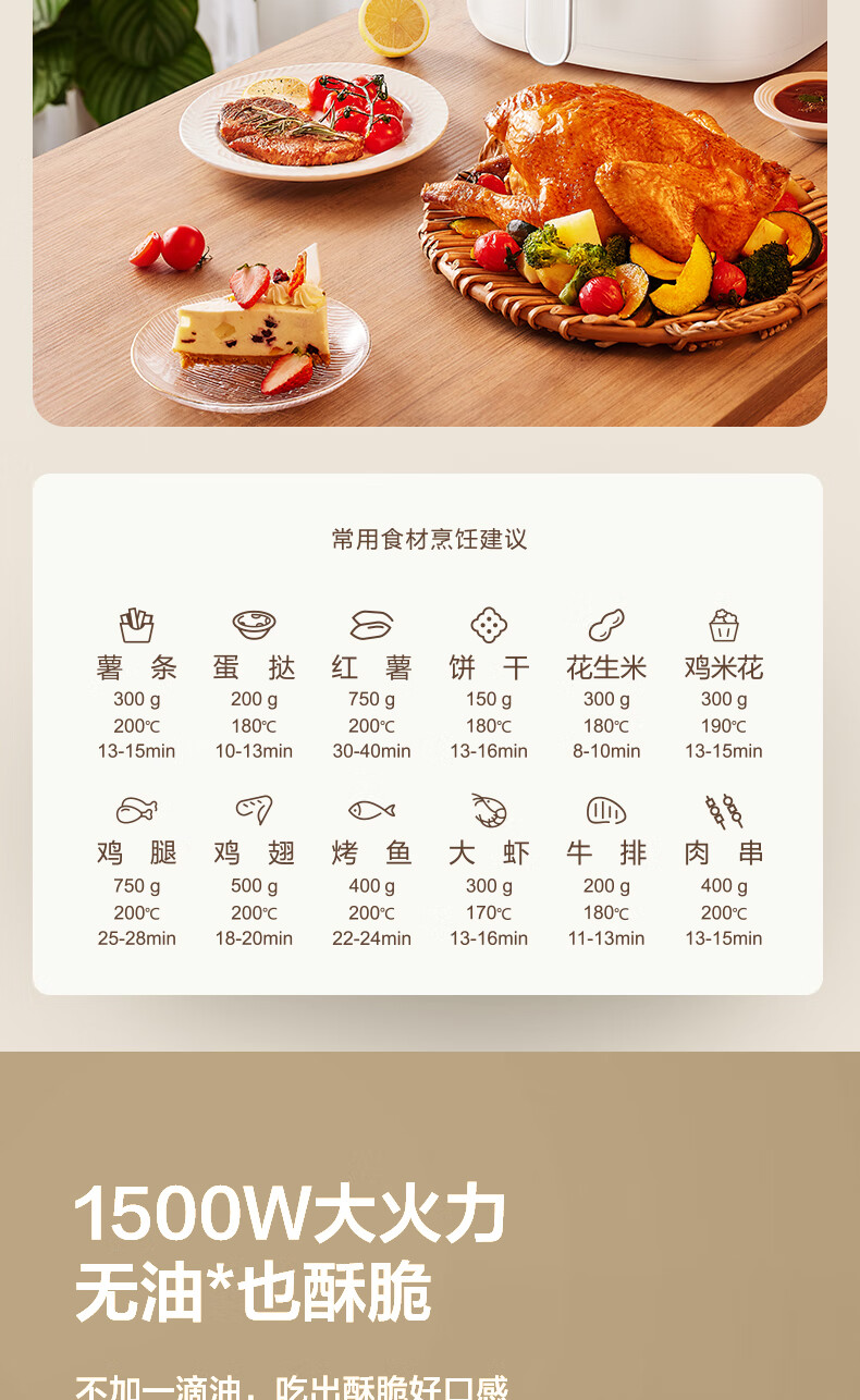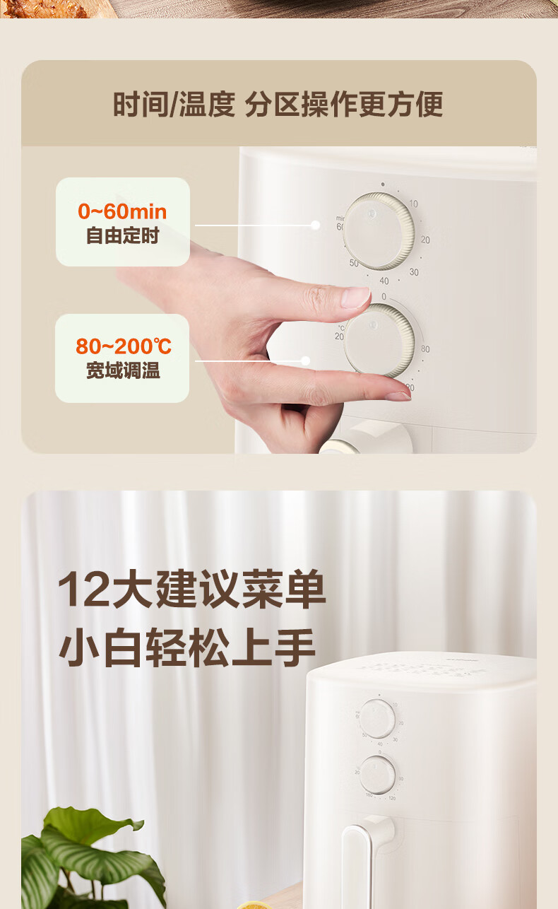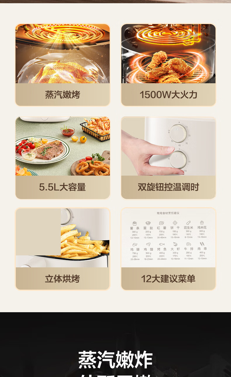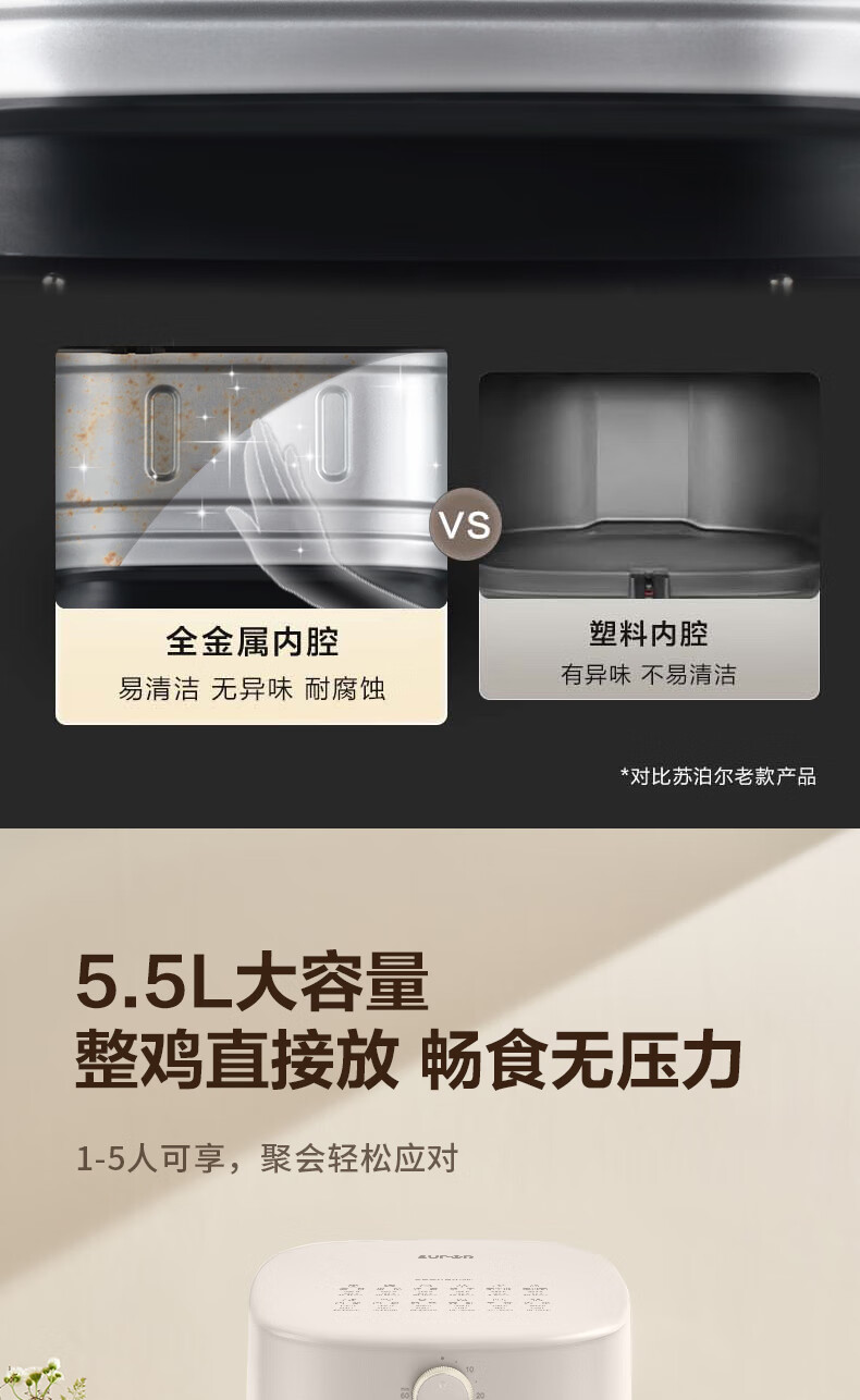 苏泊尔 (SUPOR)KJ55D78 空气炸锅5.5L/台 米黄