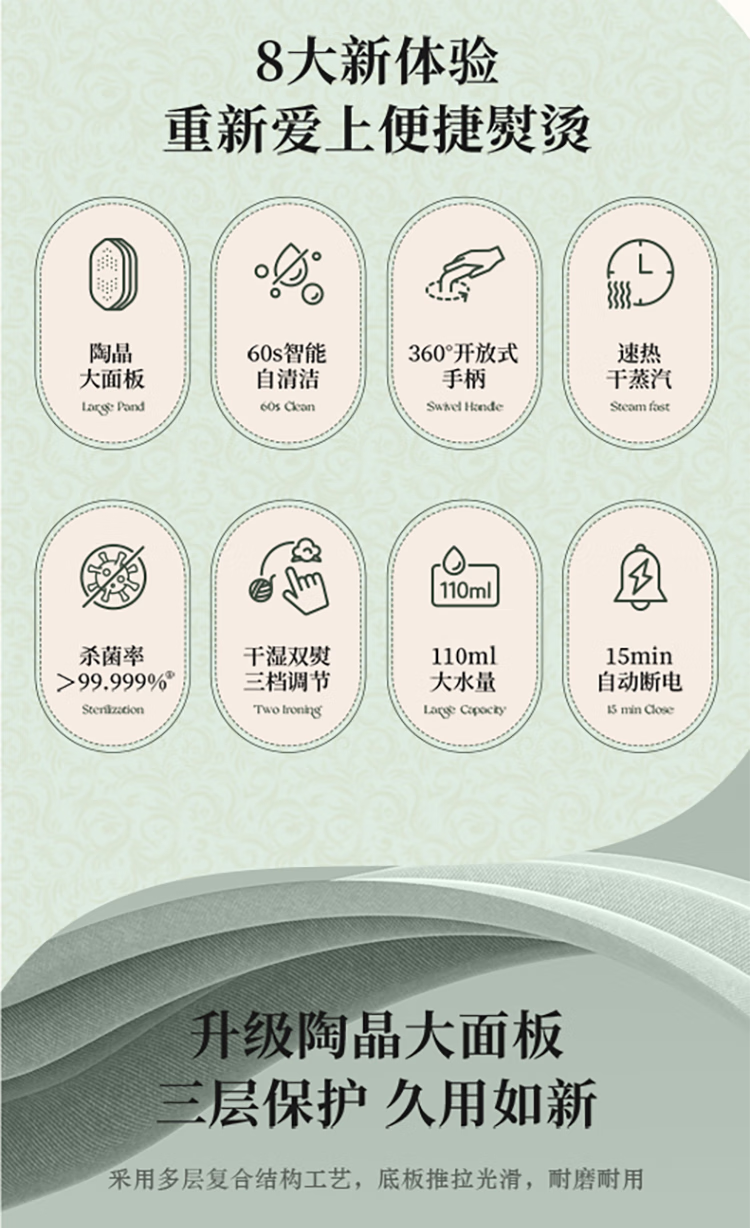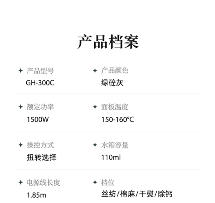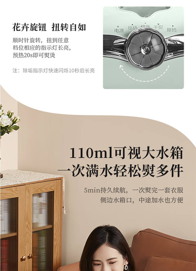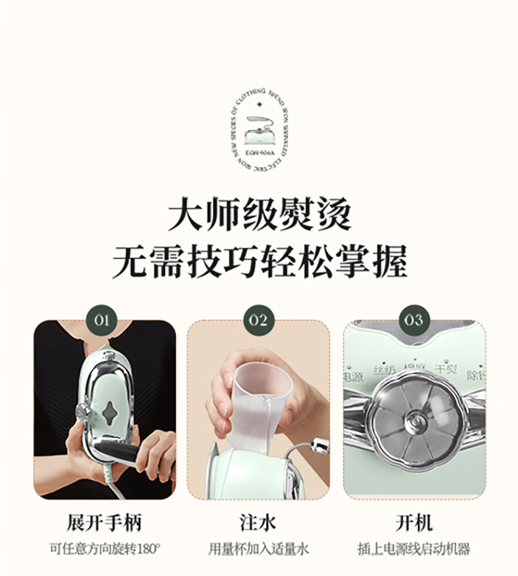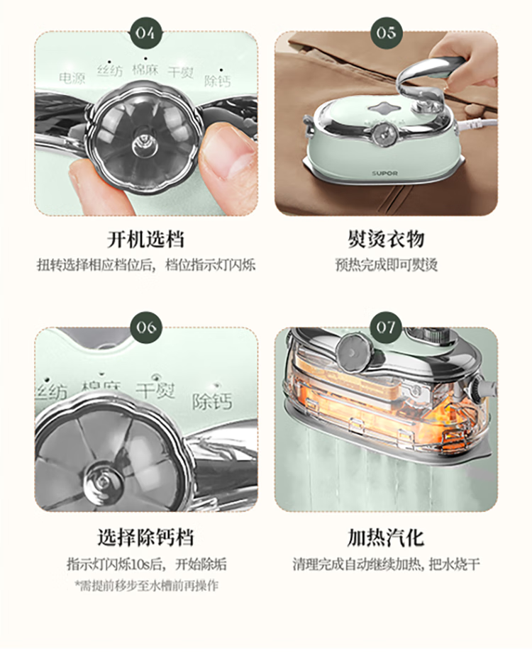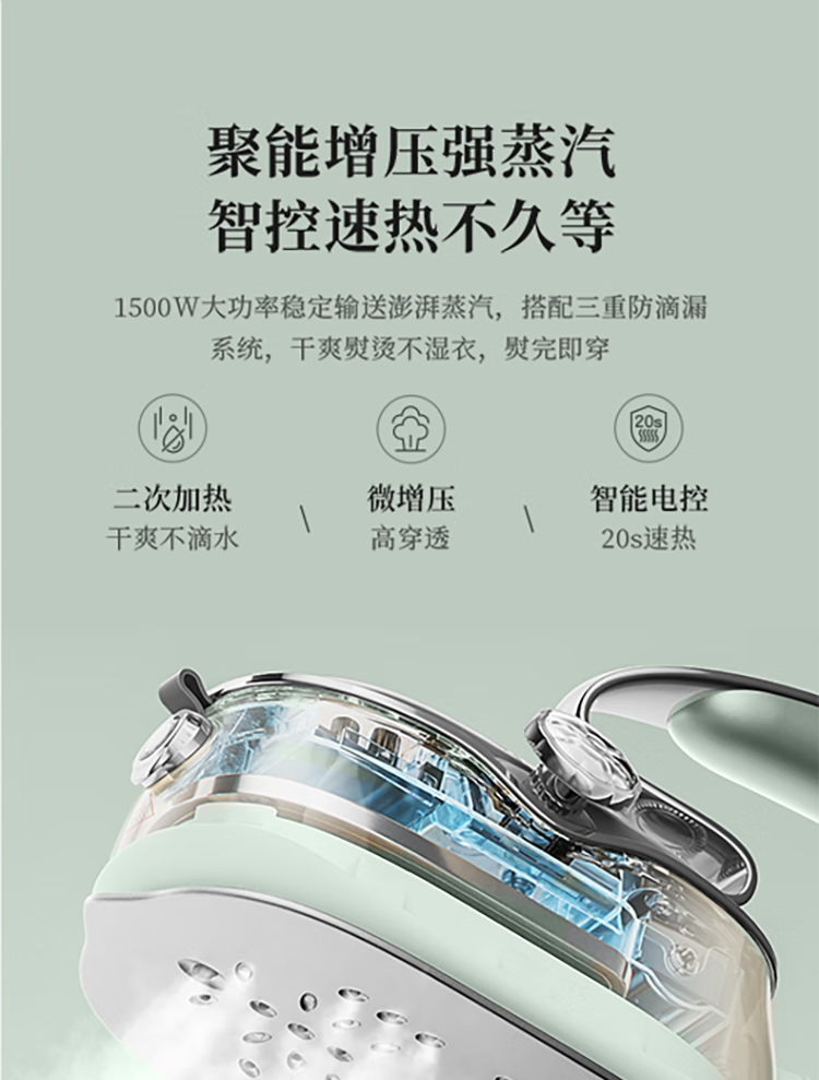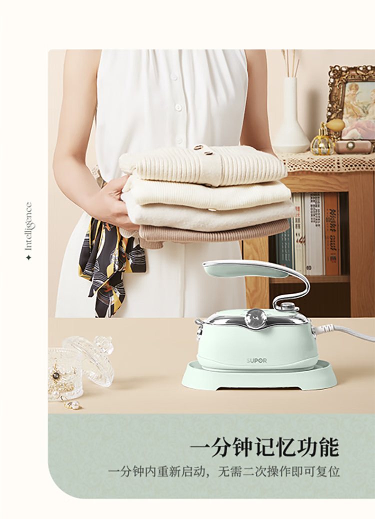 苏泊尔(SUPOR)1500W手持挂烫机GH-300C家用熨烫机110ML/台 绿色