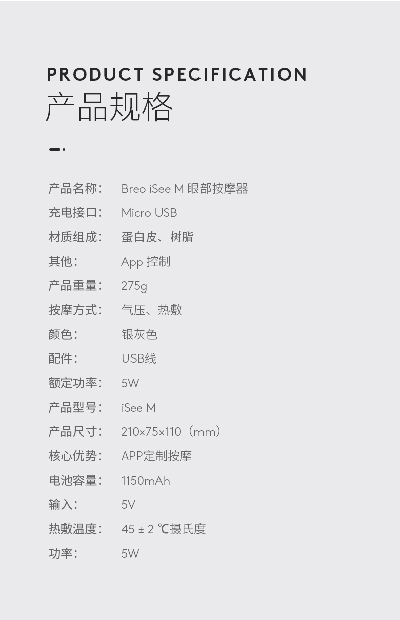 倍轻松(breo)iseeM 眼部按摩仪护眼仪 热敷按摩眼罩 节日礼品生日礼物 门店同款 单位:台 银灰色【易烊千玺代言】
