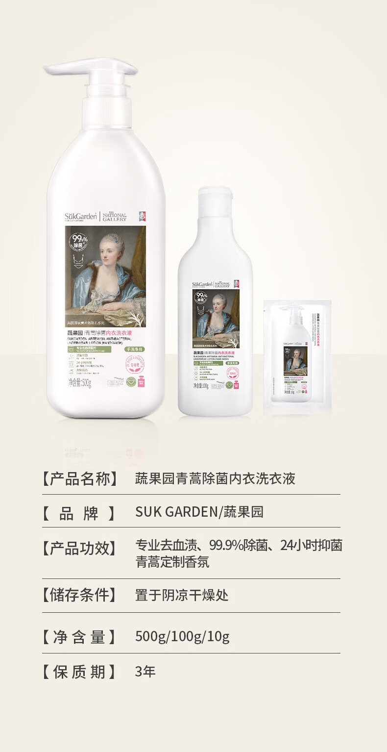 蔬果园(SukGarden)青蒿除菌内衣洗衣液-500g/瓶 生理期除菌抑菌婴儿衣物手洗 白色
