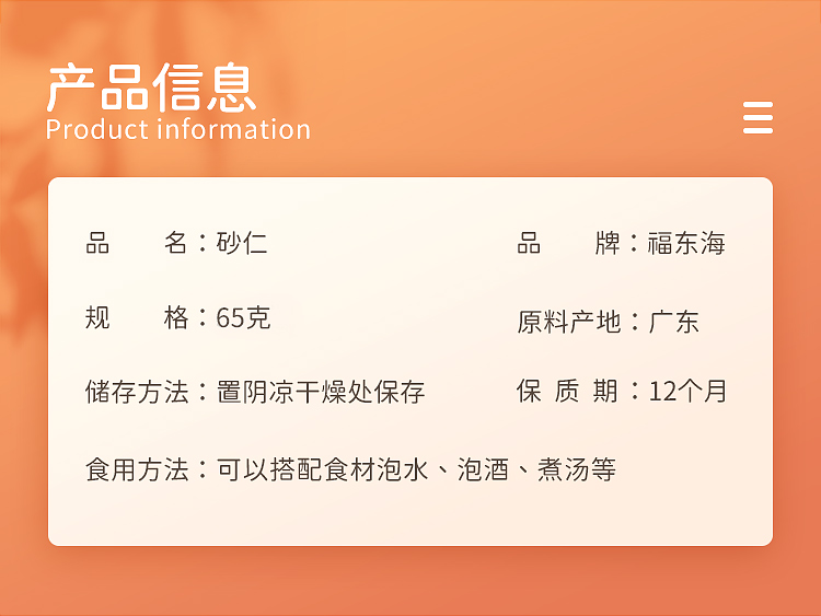 【福东海】砂仁 65克*1瓶 砂仁 65克*1瓶