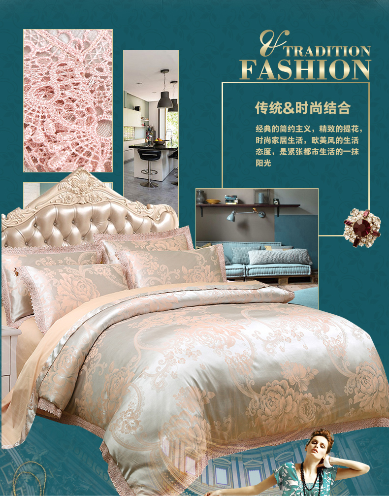 Fazeya/彩羊家纺色织提花四件套 赫本花园(银粉) 赫本花园(银粉) 200*230cm