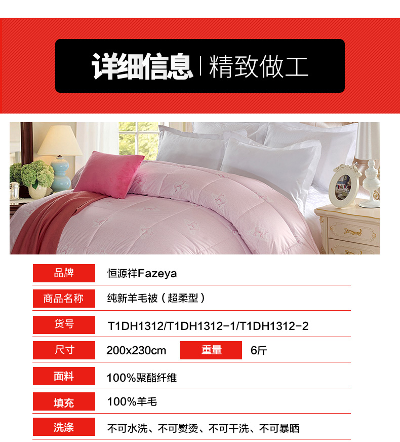 Fazeya/彩羊家纺纯新超柔羊毛被(粉色) 纯新超柔羊毛被(粉色) 200*230