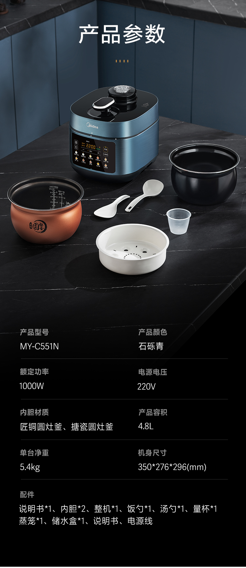 美的 电压力锅 MY-C551N(单位:台) 石砾青