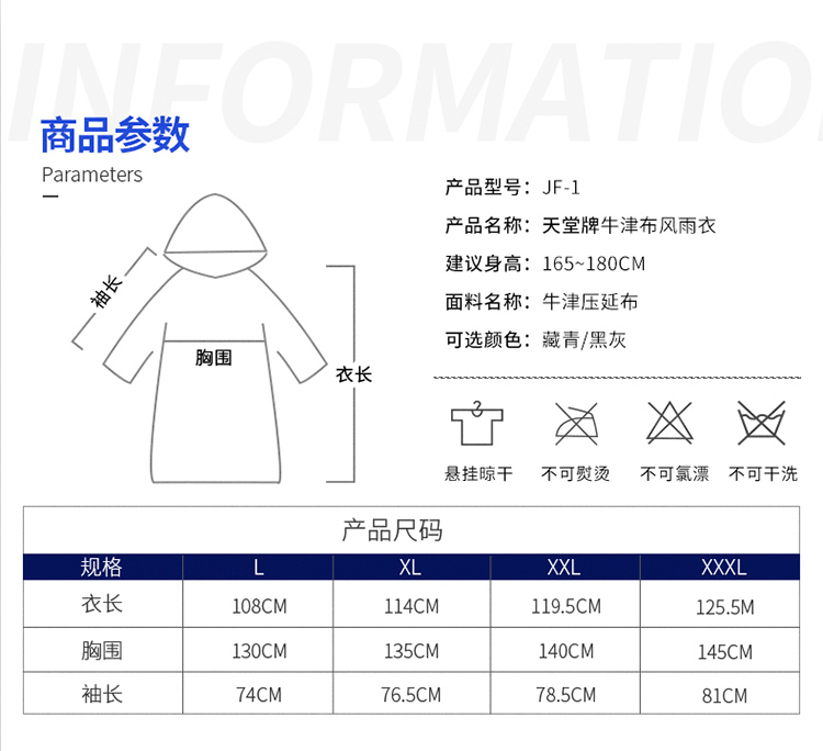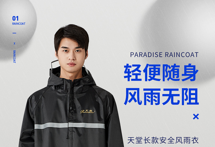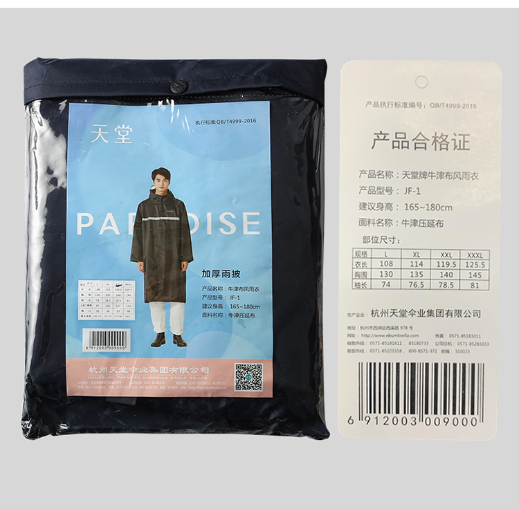 天堂伞 电动车雨衣成人雨衣男女长款风衣连体防水雨披男女款 JF-1 藏青色