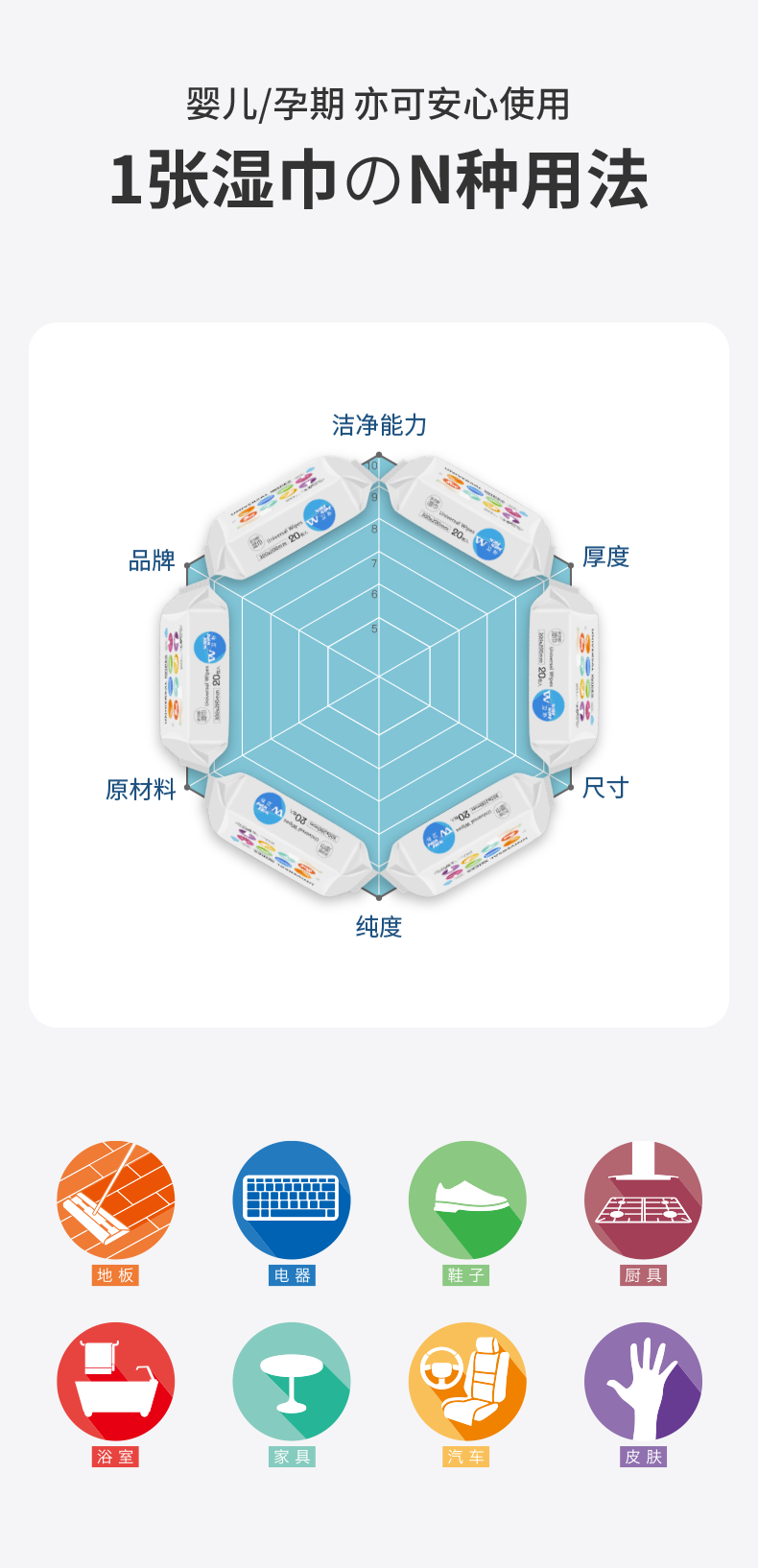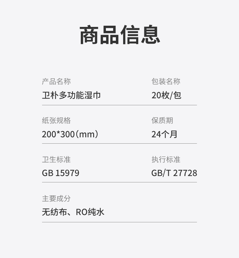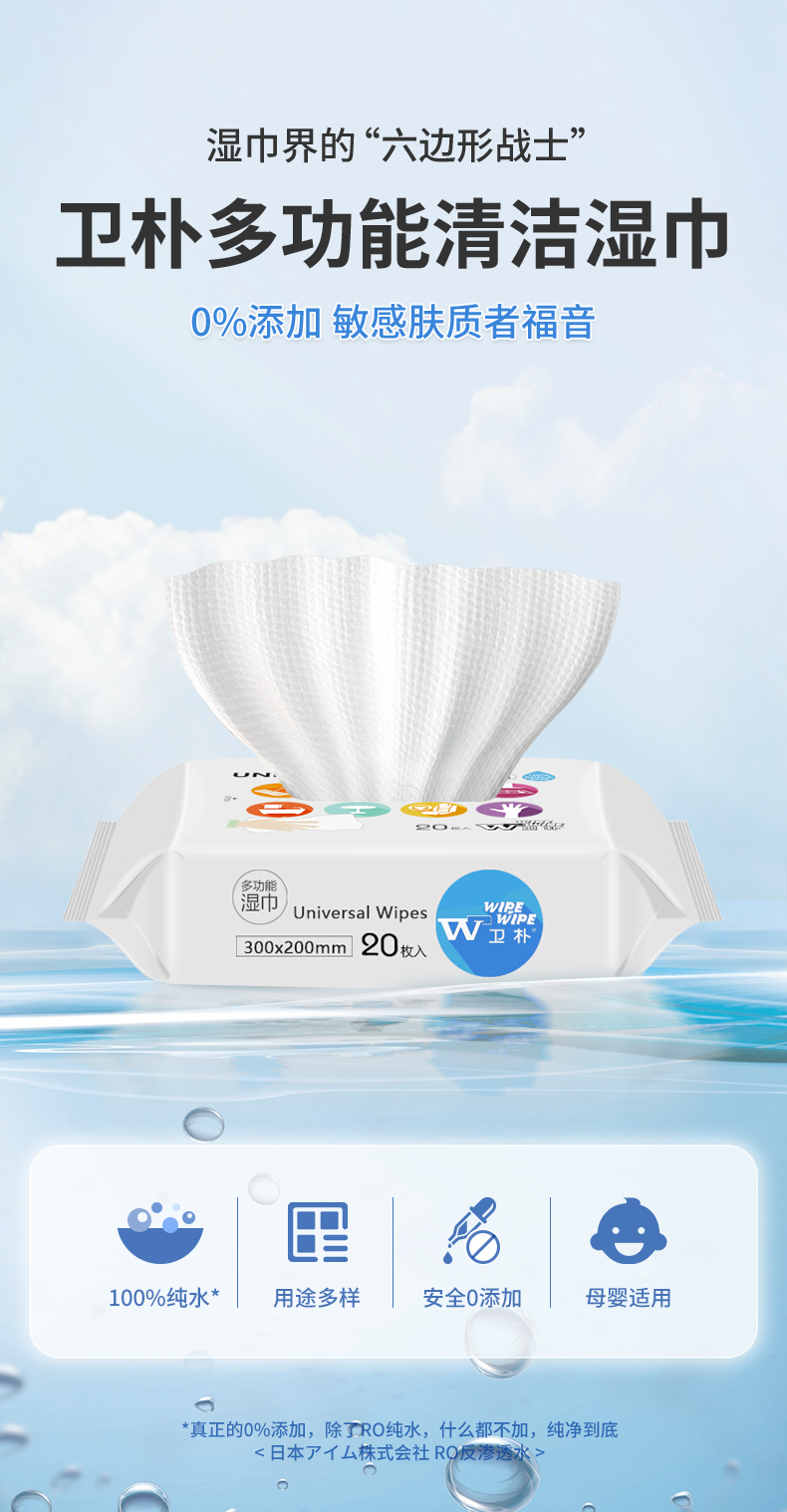 卫朴(WIPE WIPE)RO纯水湿巾多功能洁肤湿巾不含酒精0添加超厚大尺寸20片*2包