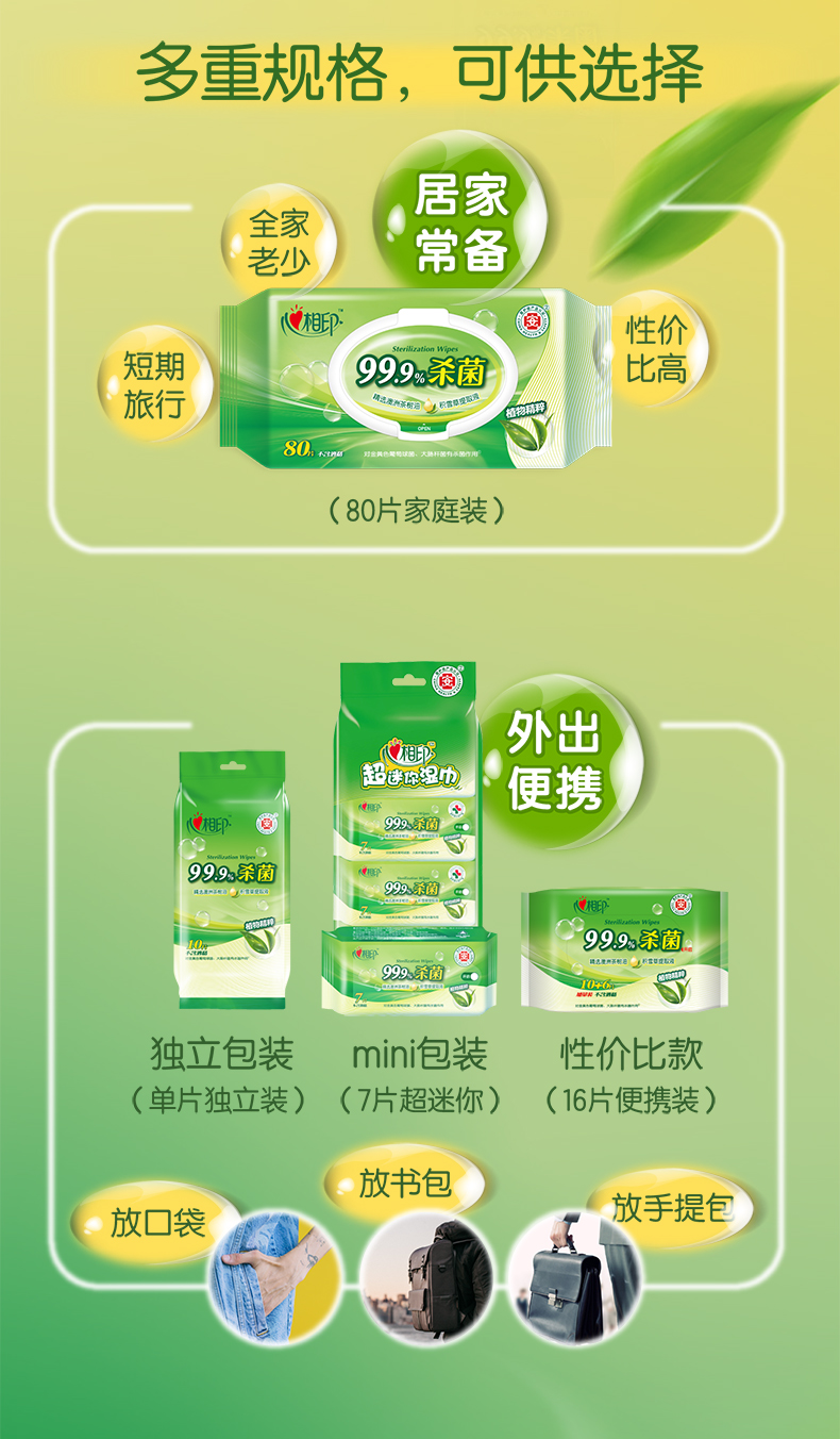 心相印XCA001(箱装)卫生系列单片装湿巾12包*8提 白色