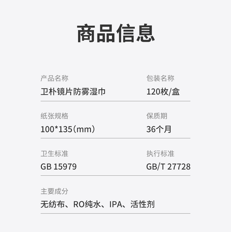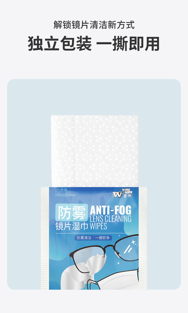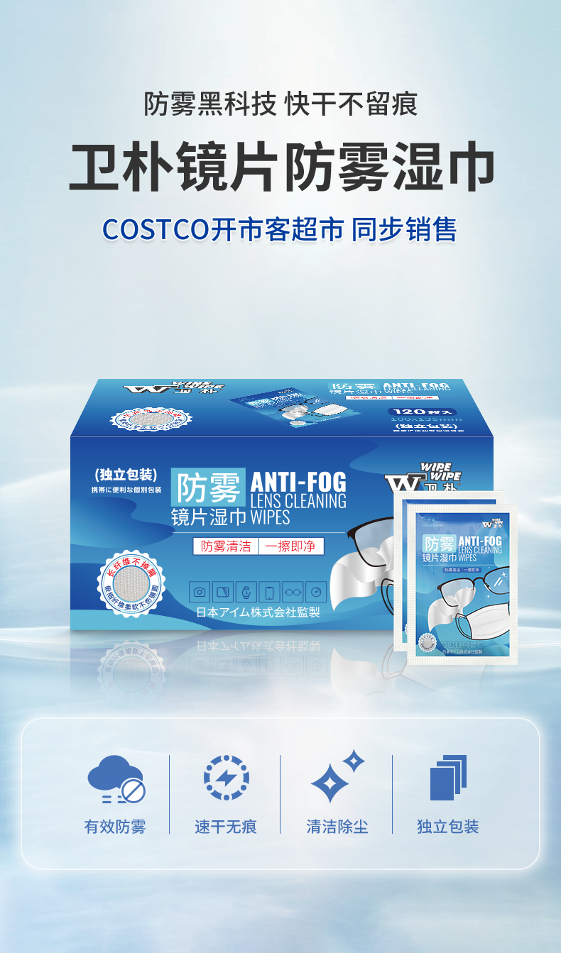 卫朴(WIPE WIPE)镜片防雾湿巾擦镜纸一次性镜布120枚入(单位:盒) 蓝色