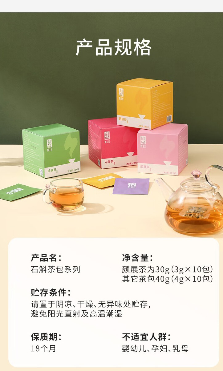 斛生元 霍山石斛熬夜必备茶 元展茶 40g(4g*10包) 混色(单位:盒)