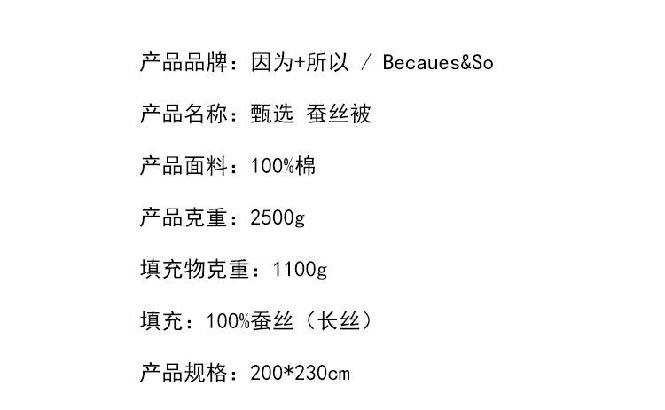 因为+所以 / Because & So 甄选蚕丝被 2800g 白色