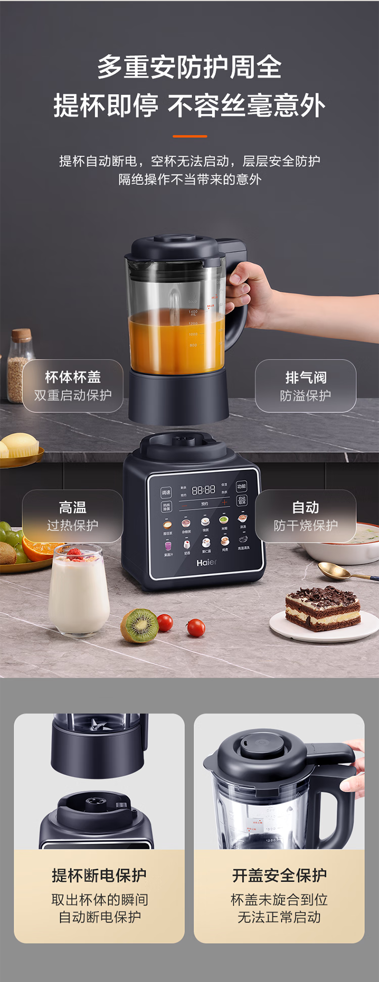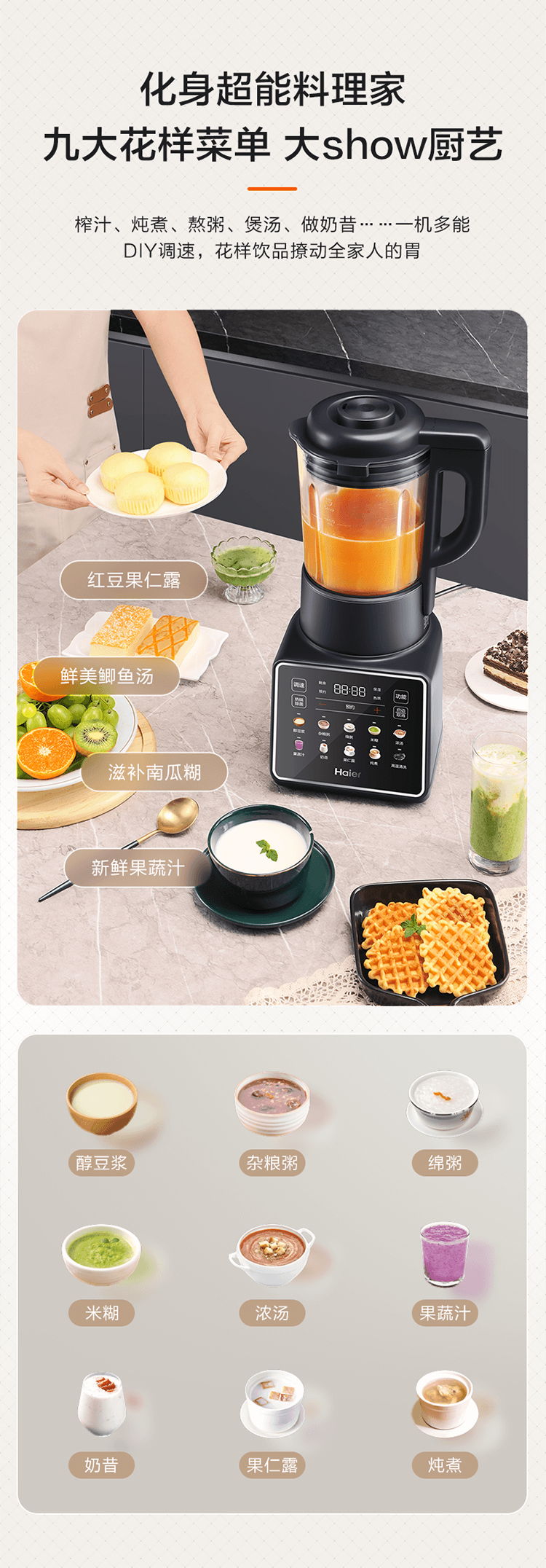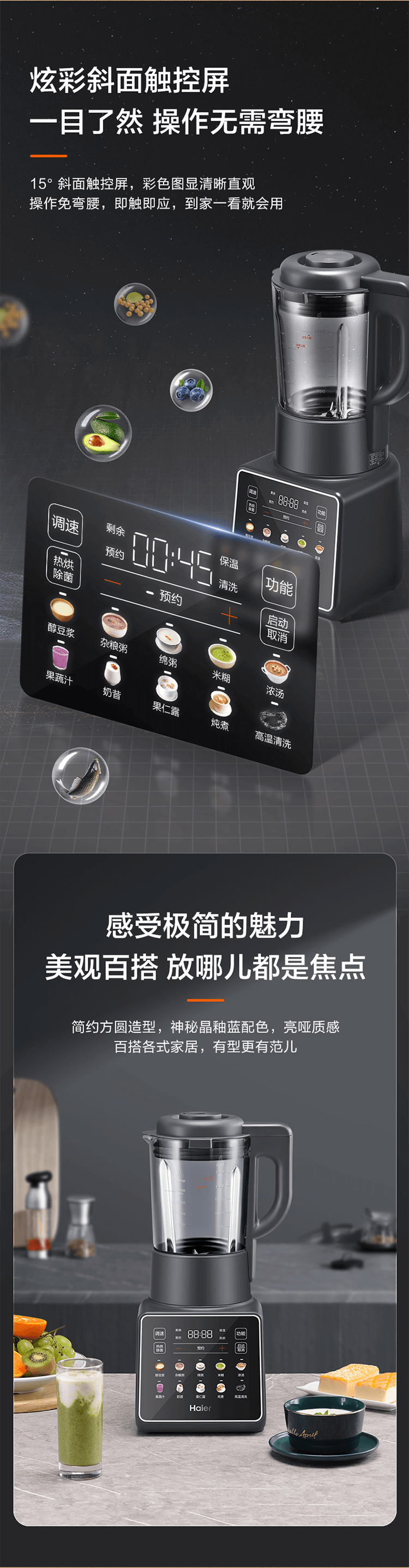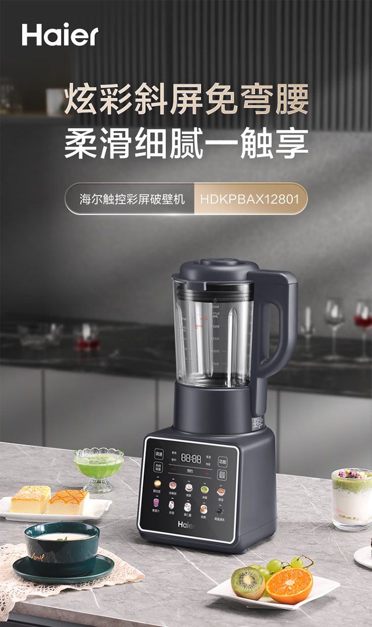 海尔新款破壁机家用加热全自动料理机HDKPBAX12801(单位;台) 晶釉蓝