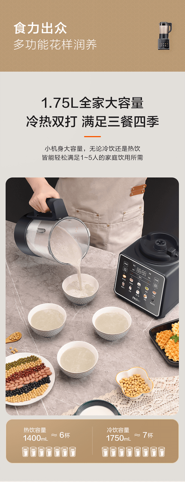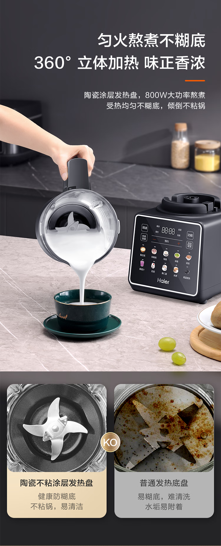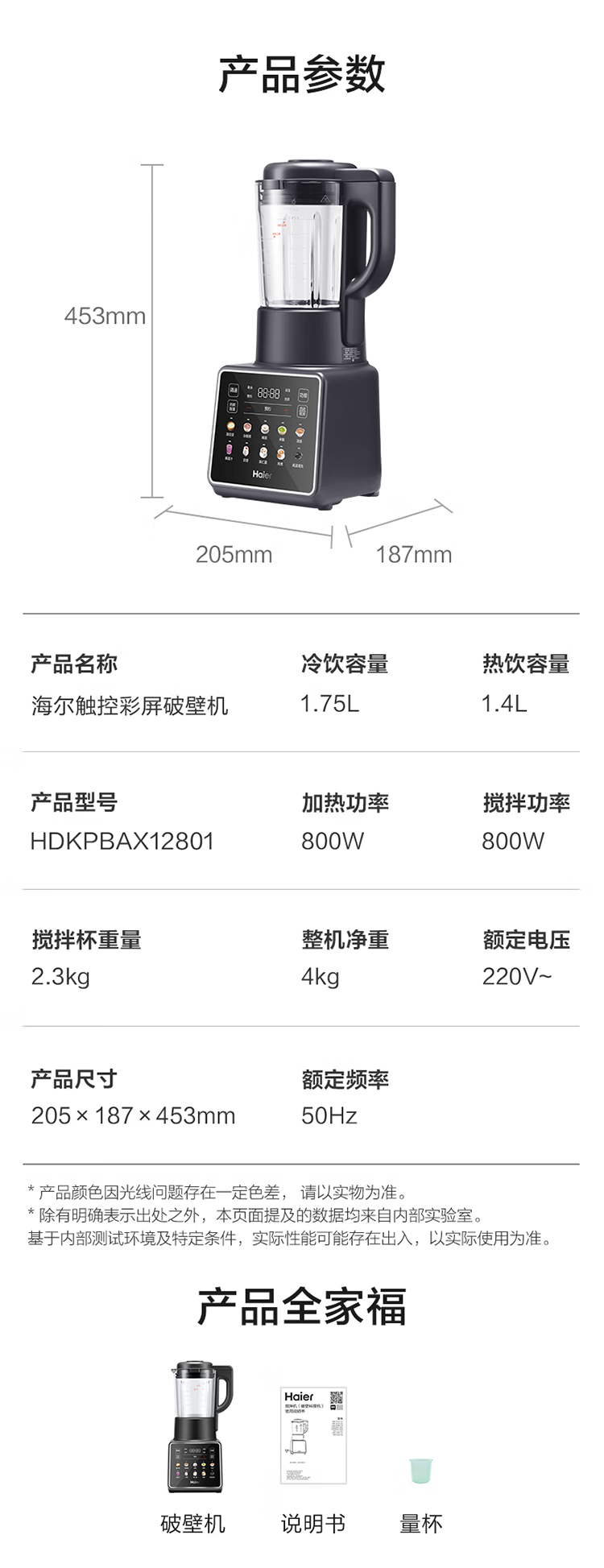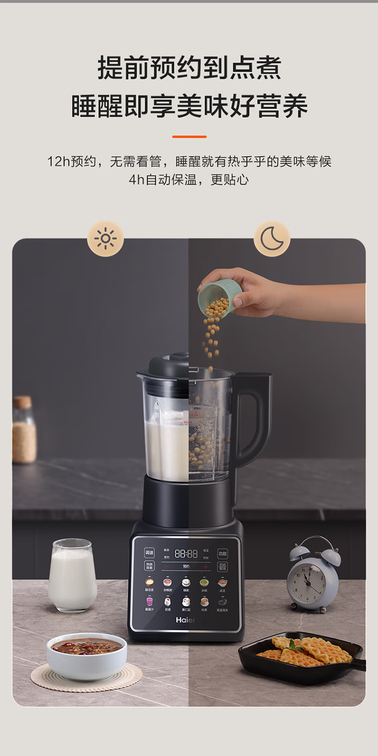 海尔新款破壁机家用加热全自动料理机HDKPBAX12801(单位;台) 晶釉蓝