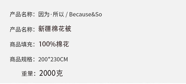 因为+所以 / Because & So 新疆长绒棉棉花被 2000g 白色