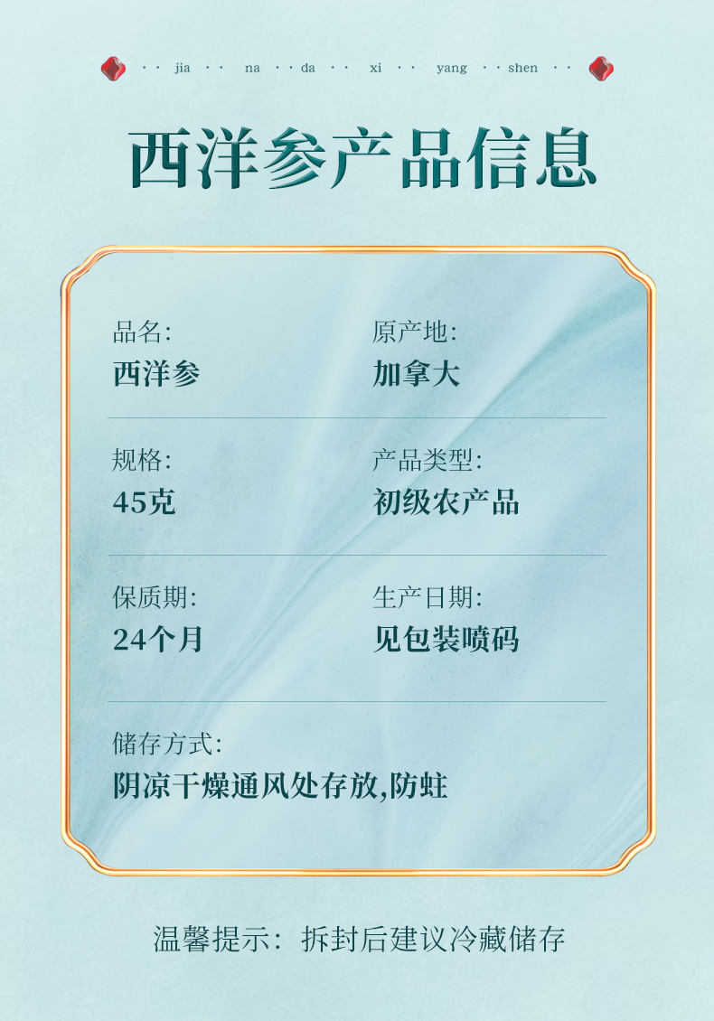 茯济堂 - 加拿大进口西洋参45克(单位:盒) 规格