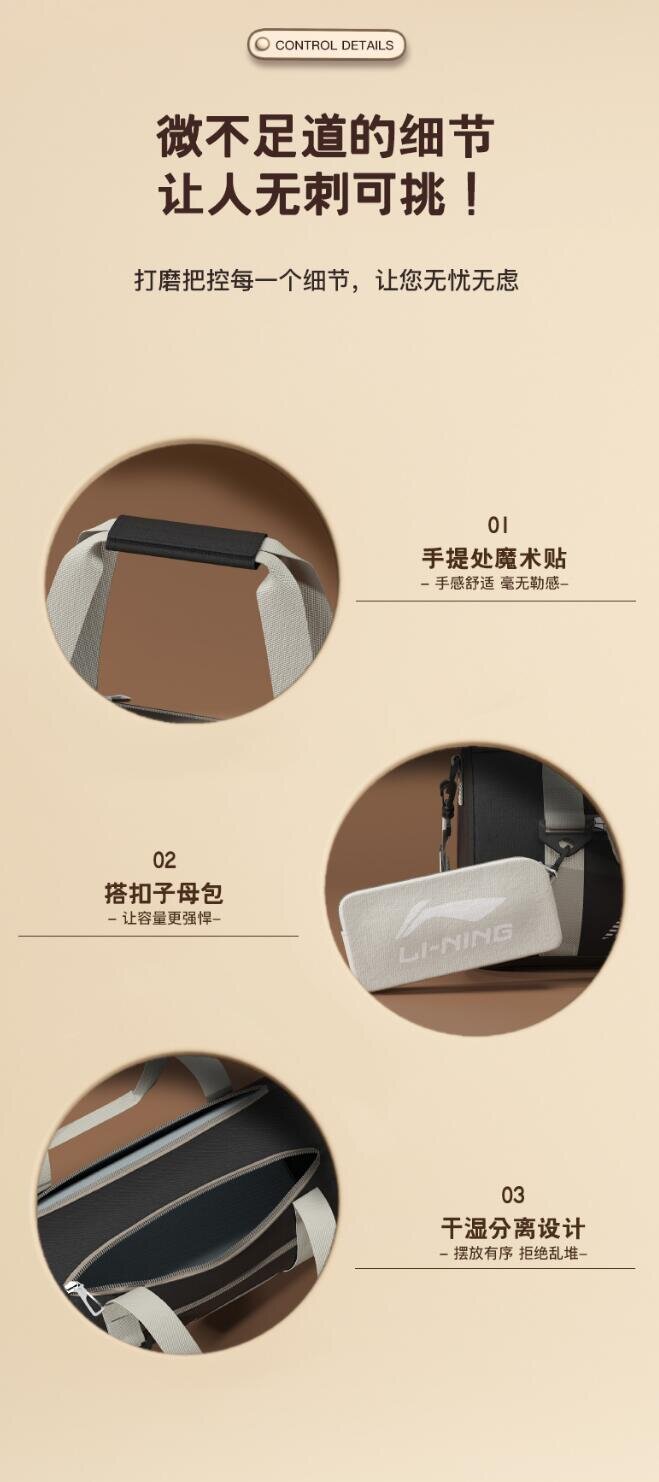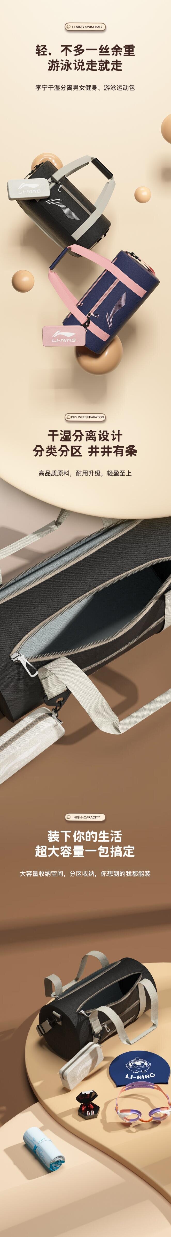 李宁 LI-NING 游泳包运动健身干湿分离收纳包大容量斜跨手提包LNBT756-1黑银色(单位:个
