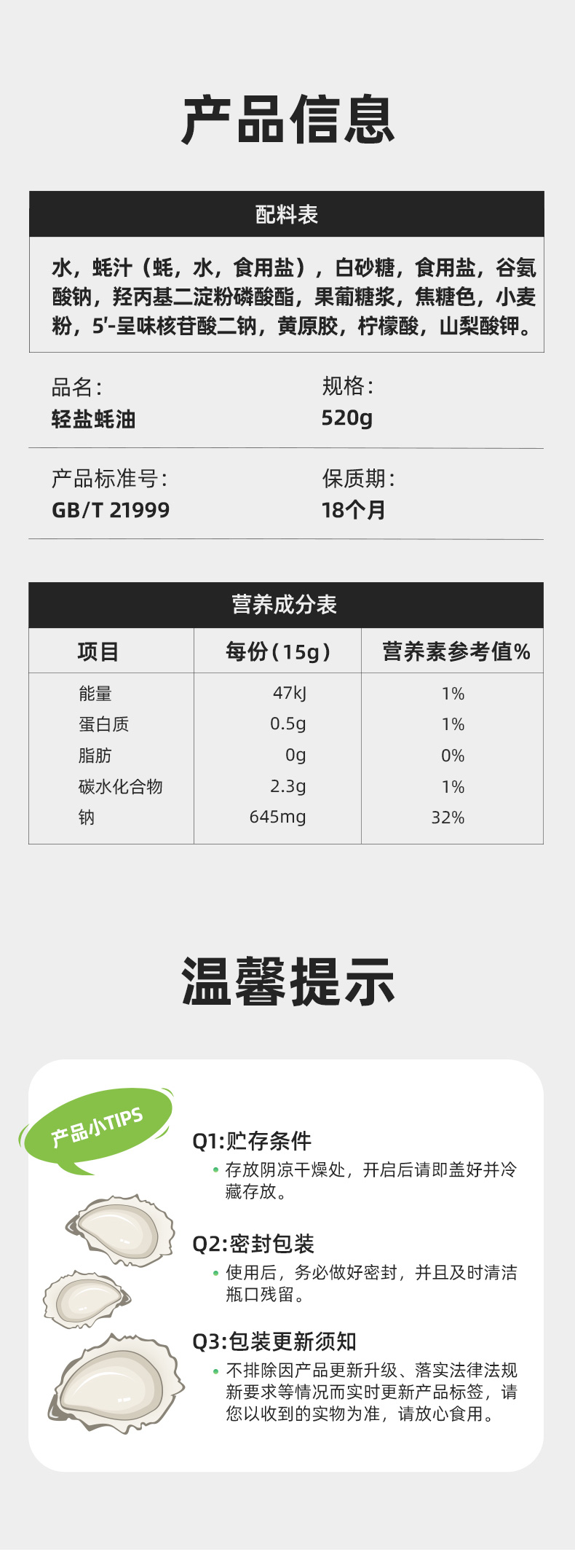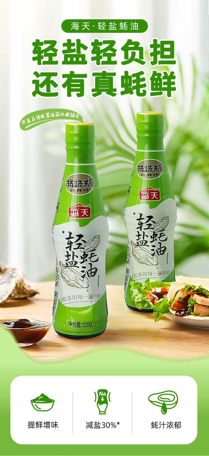 海天轻盐蚝油挤挤装520g/瓶(中华老字号) 520g/瓶
