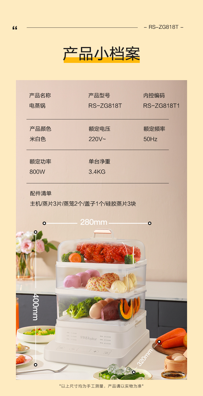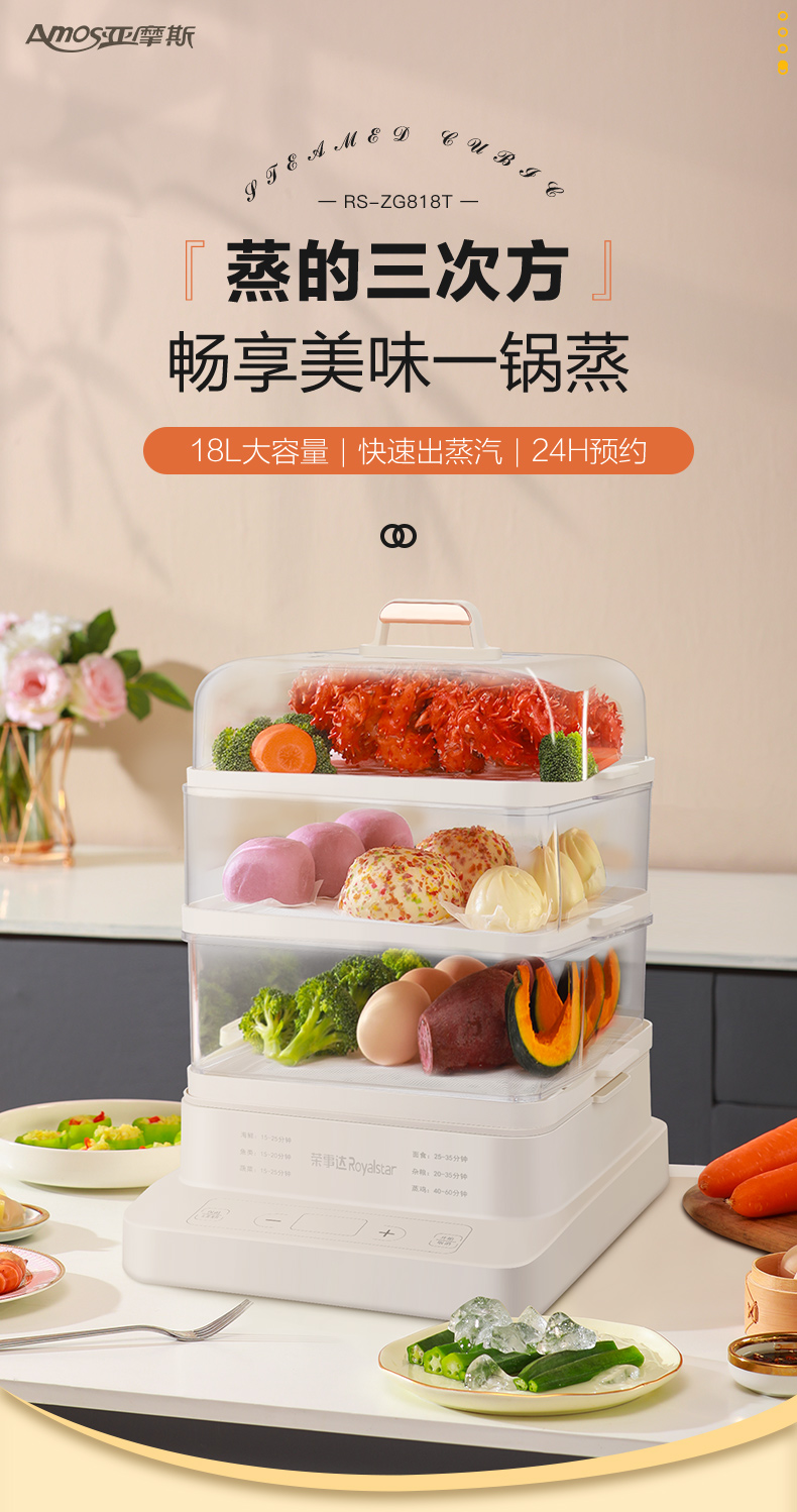 荣事达 家用大功率18L电蒸锅 RS-ZG818T(单位:台) 白色