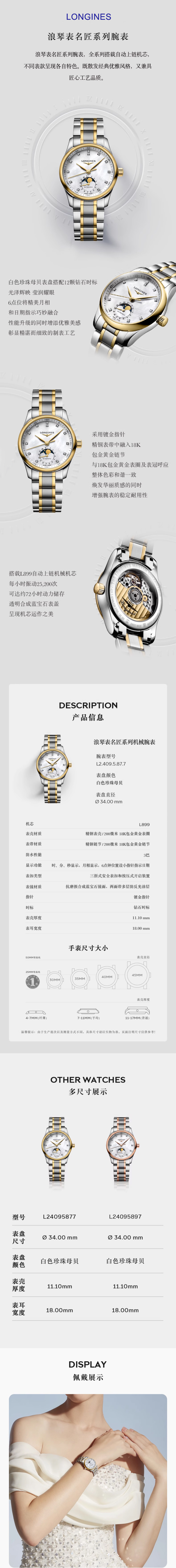 浪琴Longines 名匠系列月相机械手表女表 L2.409.5.89.7(单位1块) 珠光贝母