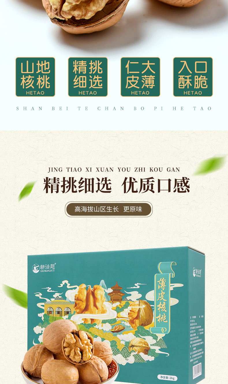 耕话题陕北休闲零食坚果礼盒薄皮核桃礼盒装2kg