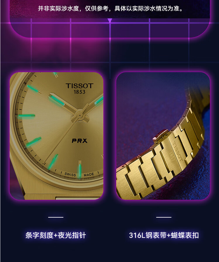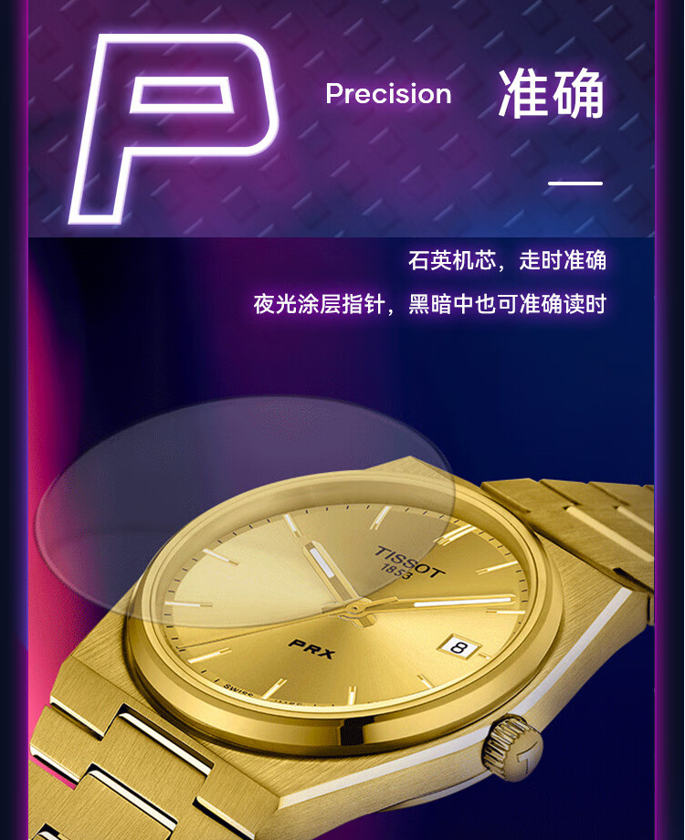 TISSOT天梭 PRX超级玩家系列石英女表手表 T137.210.33.021.00(单位1块) 金色