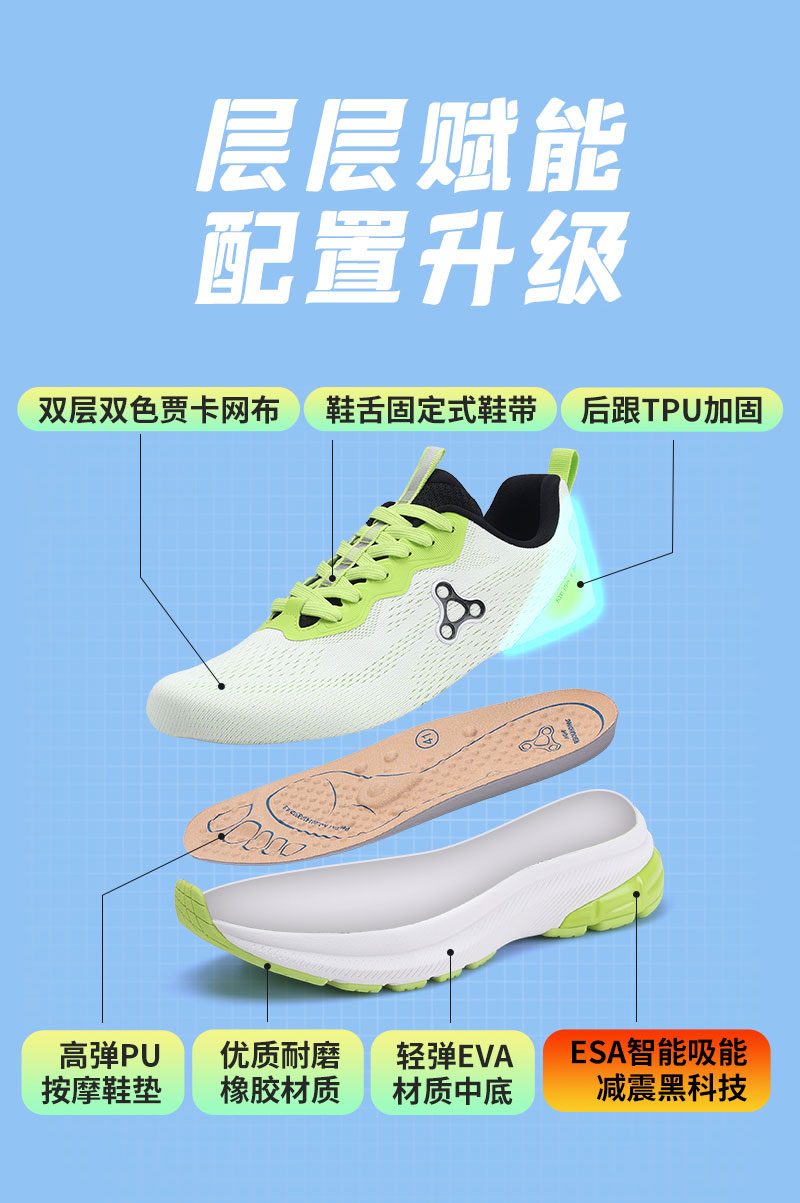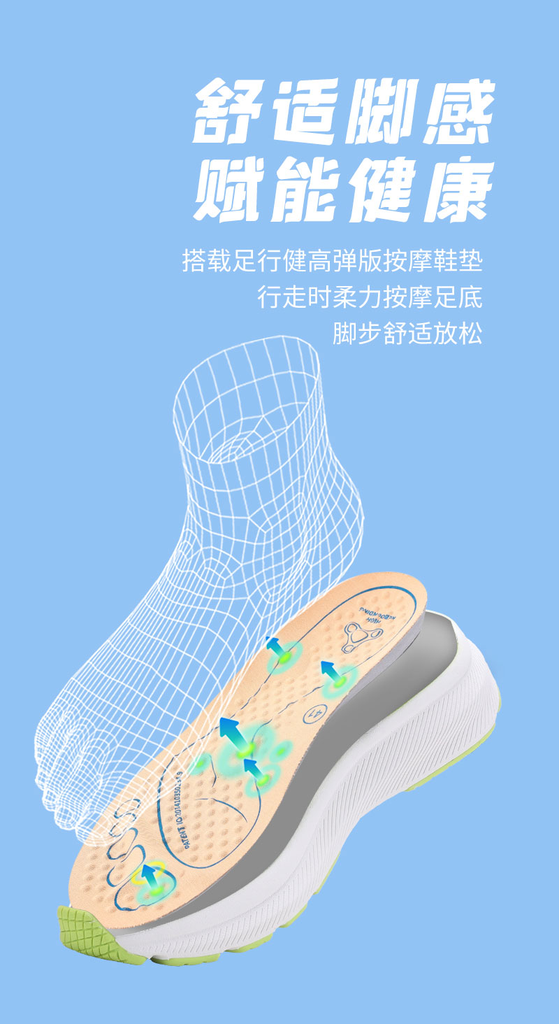 足行健按摩鞋新款飞织网面透气吸震减震双鞋垫款-挥洒自如 单位:双 灰黑 41