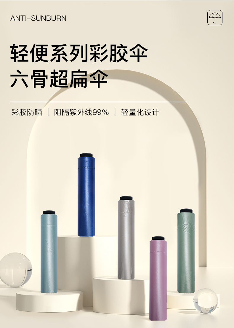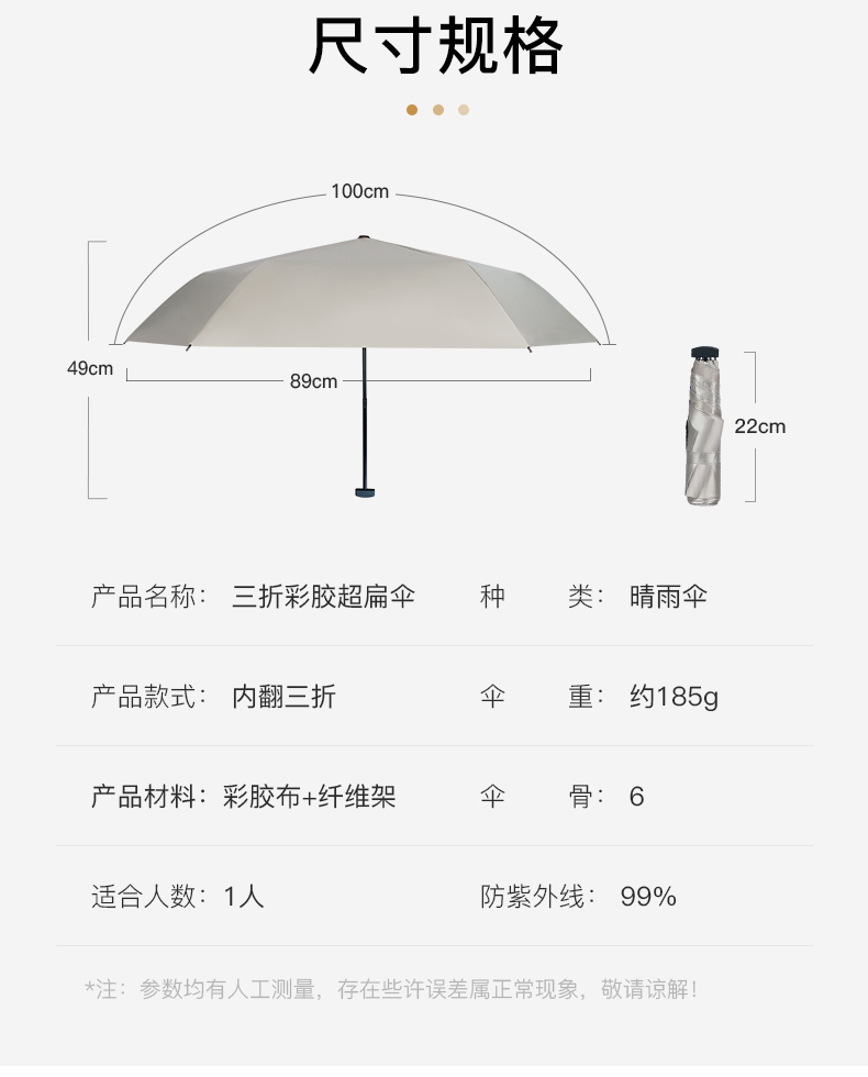 红叶 三折彩胶超扁伞 3533(单位:把) 香槟色