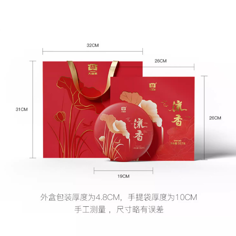 大益茶叶普洱 流香 茶叶礼盒 礼盒装 357g * 1盒 熟茶