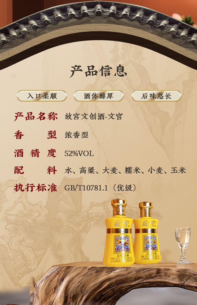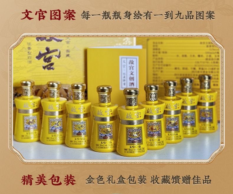 故宫御窖酒 1562 故宫文创酒文官 52度浓香型白酒 礼盒装 100ml*9瓶