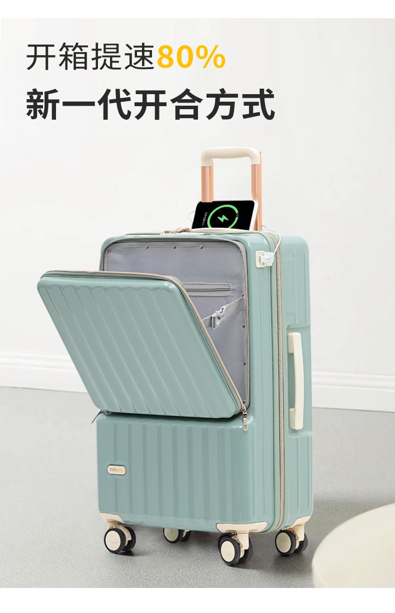 途帮(TOBOOG)前开盖多功能行李箱2109 20寸/个 莫兰迪灰 20寸