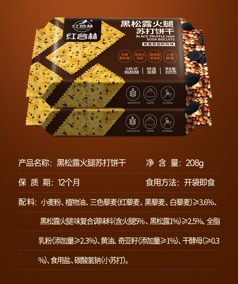 红谷林黑松露火腿 苏打饼干208克*6袋(单位:袋) 深灰色