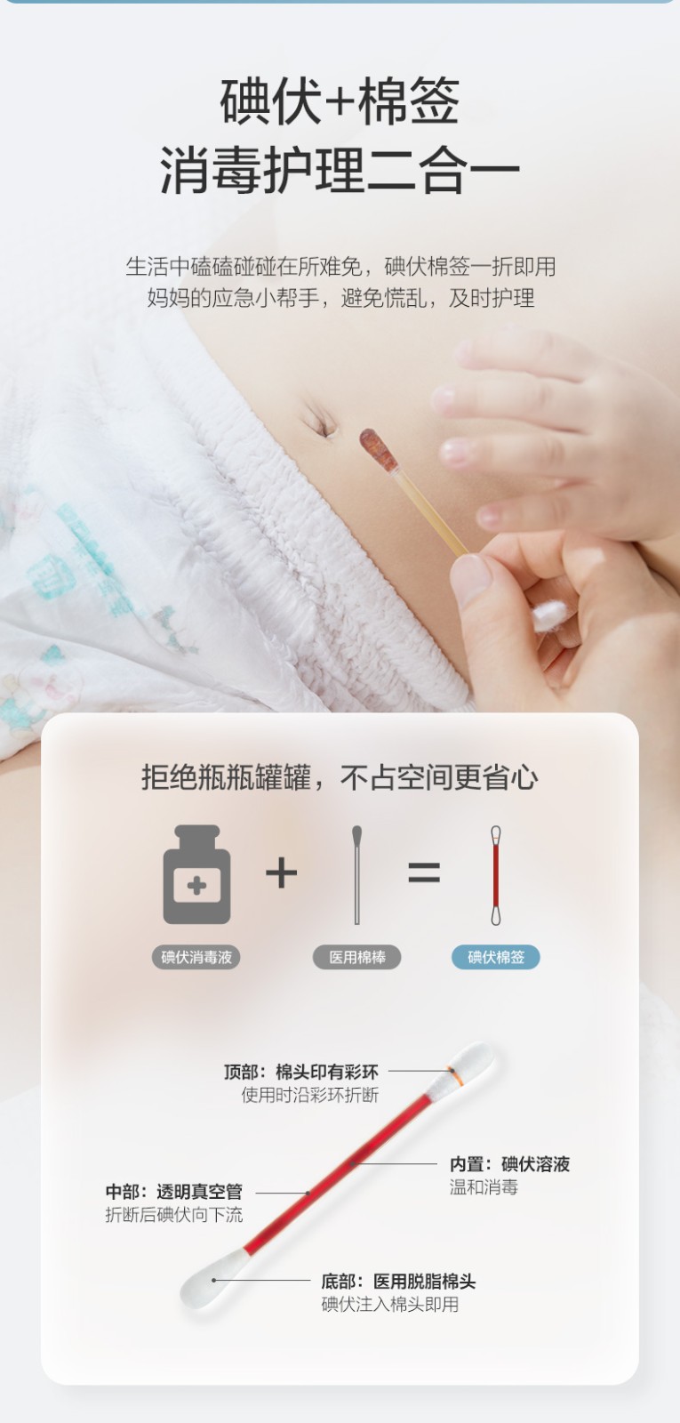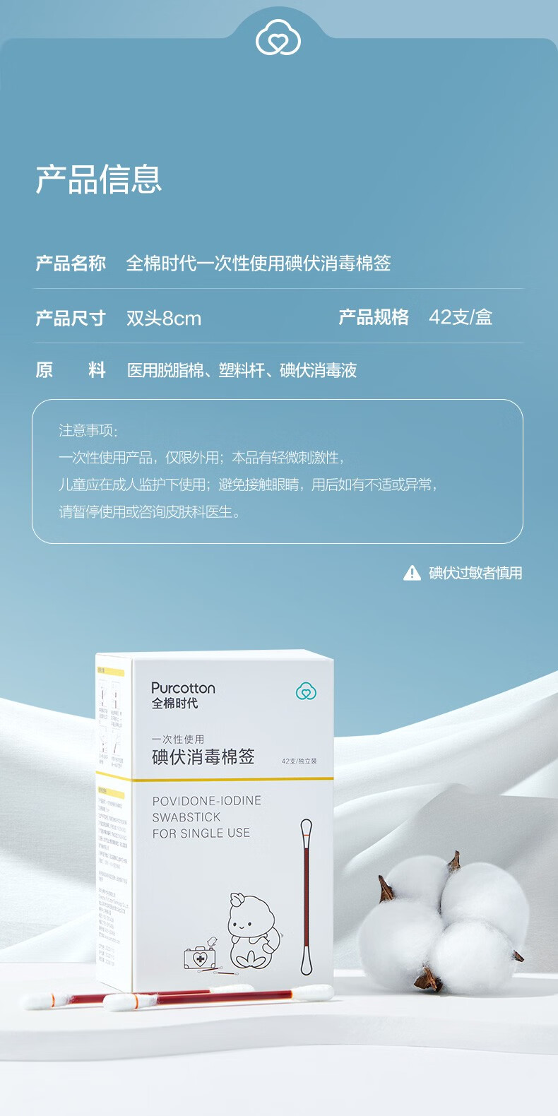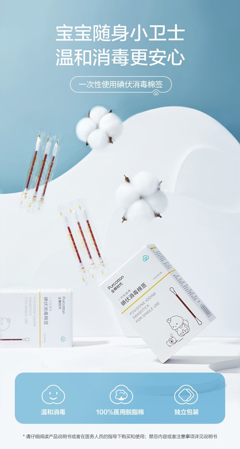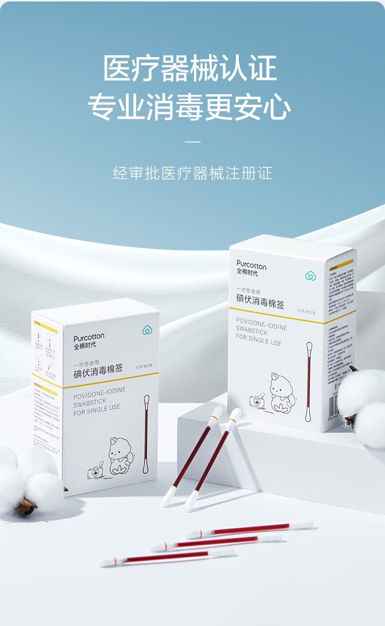 全棉时代一次性碘伏棉签独立装42支/盒P321930500006(单位:盒) 本白色