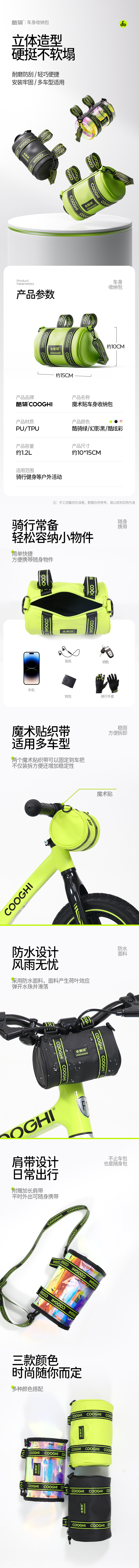 酷骑(COOGHI)自行车包前梁包公路山地车包车头包防水包车前包圆筒包车把包1.2L/个 酷骑小挂包 (2L)黑色