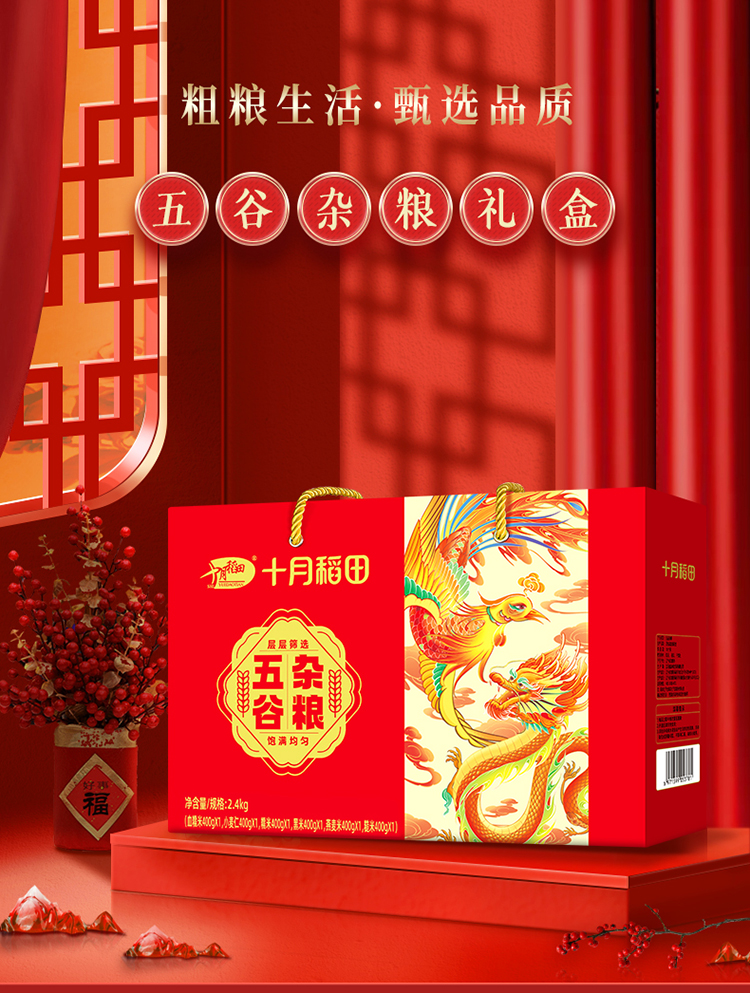 十月稻田 杂粮礼盒 2.4kg 五谷杂粮 红色(单位:盒)