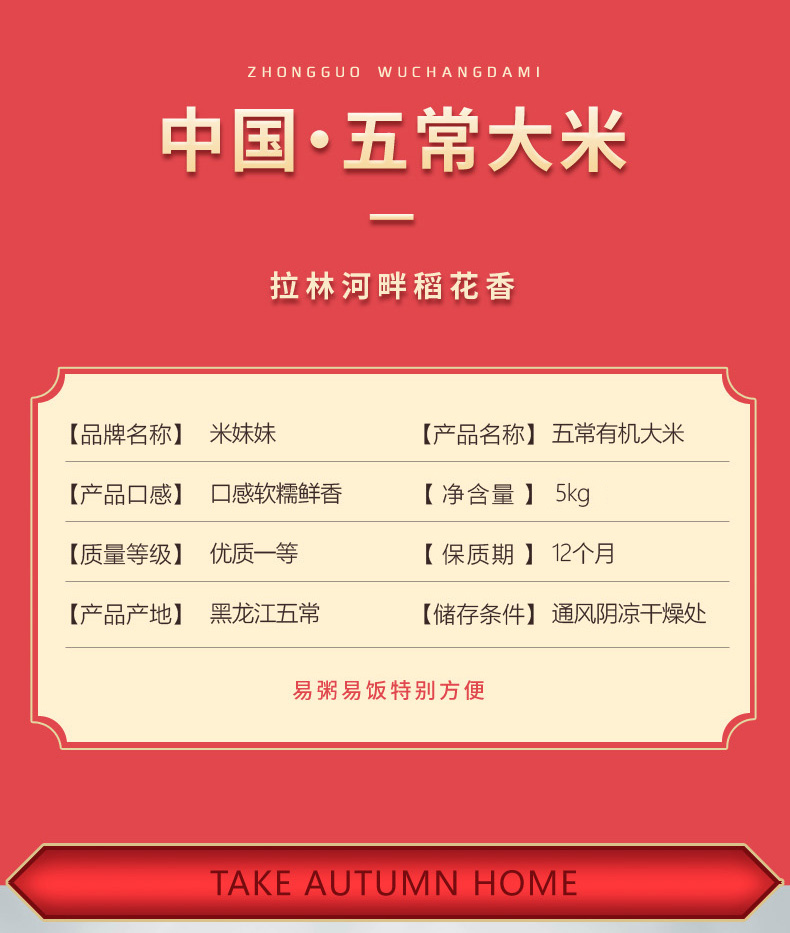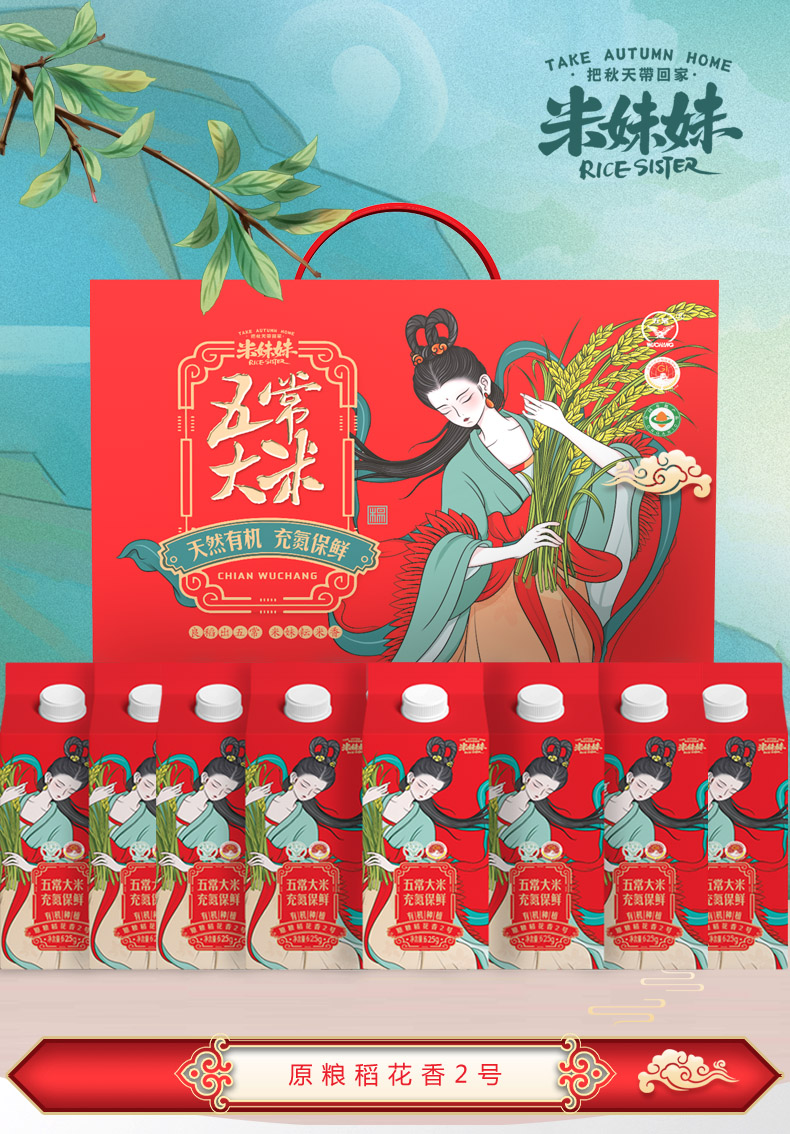 米妹妹(MIMEIMEI) 五常大米礼盒装 625g*8 香甜软糯营养丰富 红色(单位:盒)