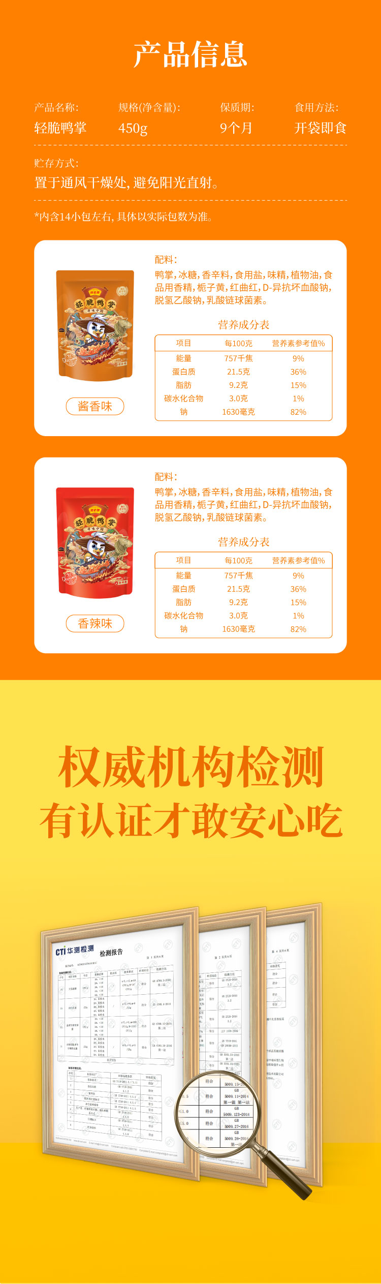 藤桥牌 藤桥轻脆鸭掌 450g 酱香味 棕色(单位:袋)