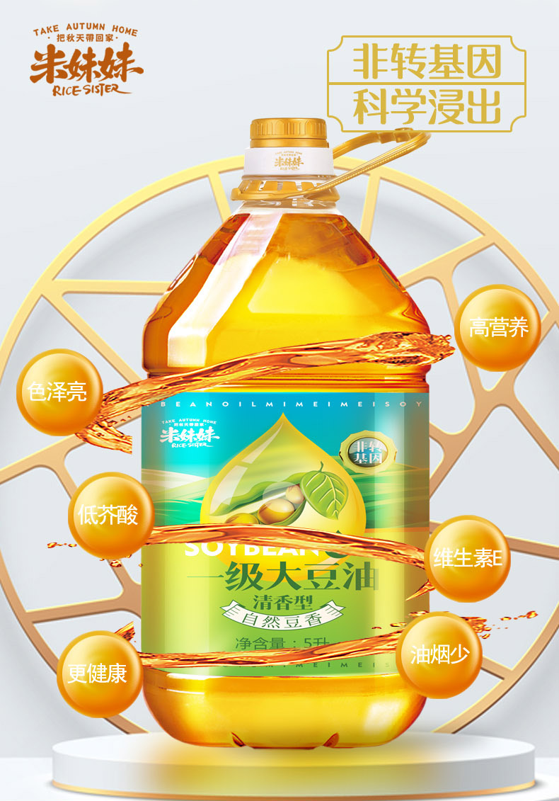 米妹妹(MIMEIMEI) 东北大豆油 5L 非转基因清香型 黄色(单位:桶)