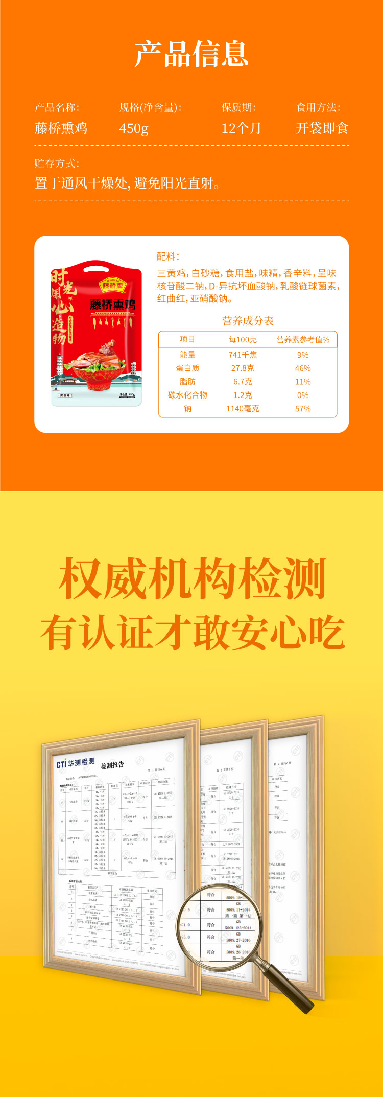 藤桥牌 藤桥熟食熏鸡 450g 熟食熏鸡 棕色(单位:袋)