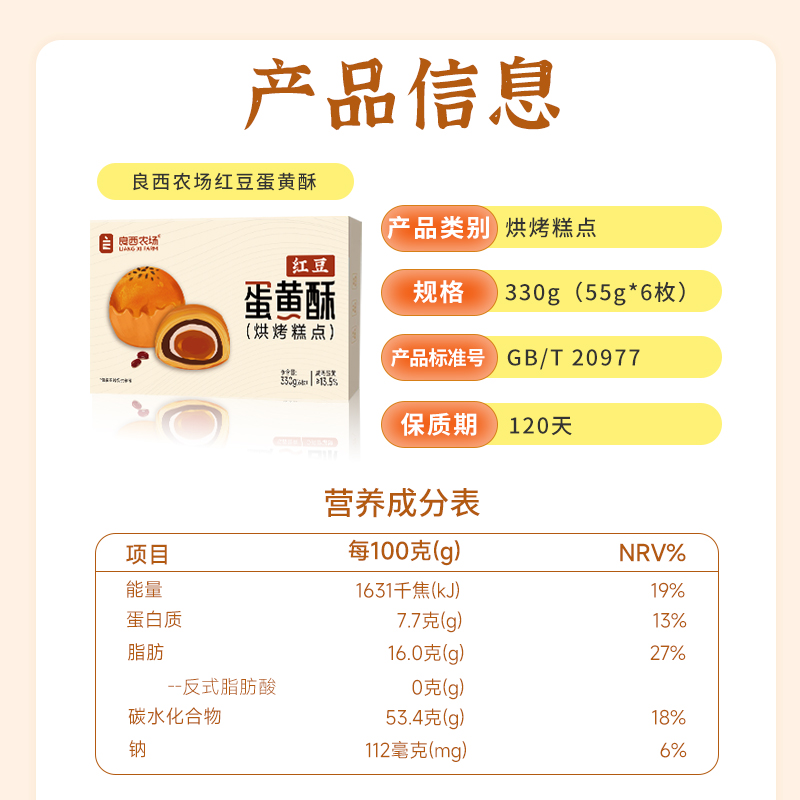 良西农场 红豆味 330g 蛋黄酥 象牙色(单位:盒)