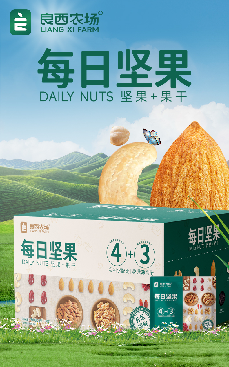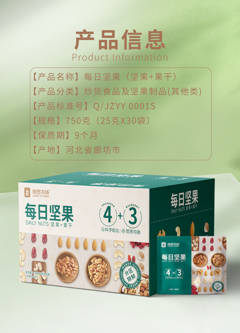 良西农场 坚果礼盒 750g 每日坚果 绿色(单位:盒)
