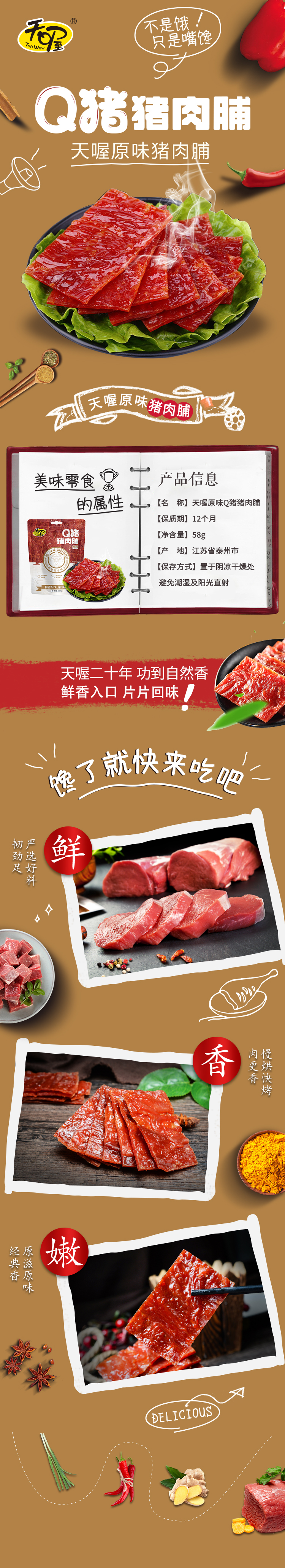 天喔(Tenwow) 单袋装 58g Q猪猪肉脯 枣红色(单位:袋)
