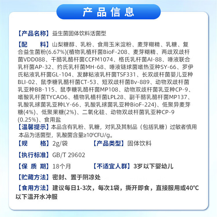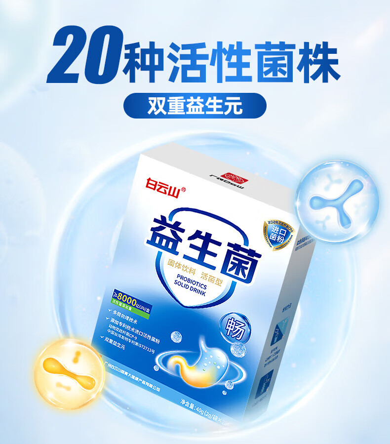 白云山 (8000 亿) 2g*20 益生菌固体饮料 水蓝色(单位:盒)
