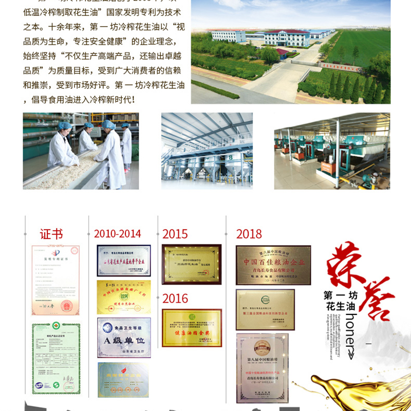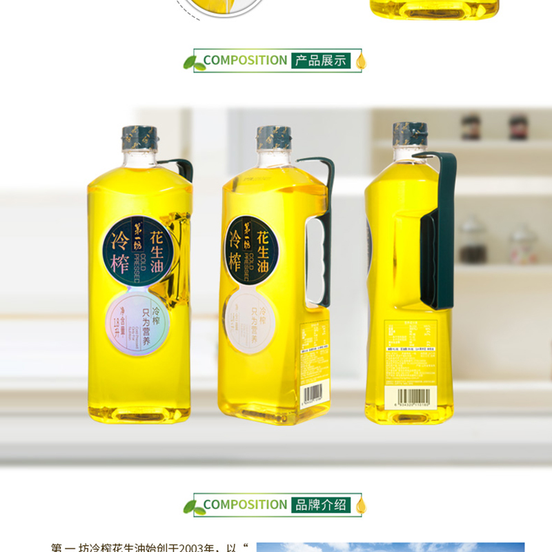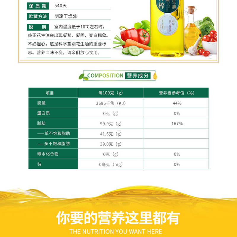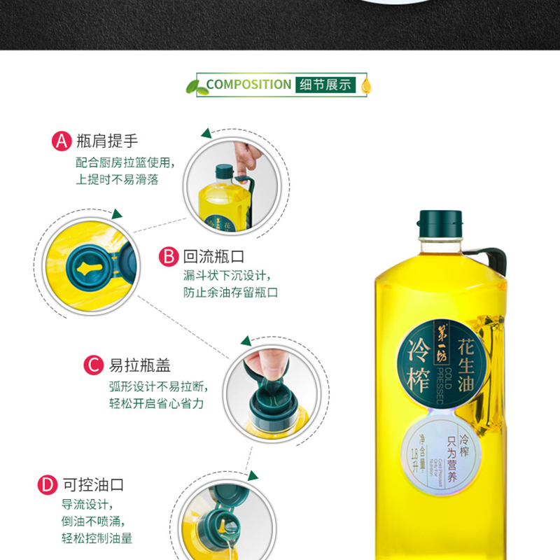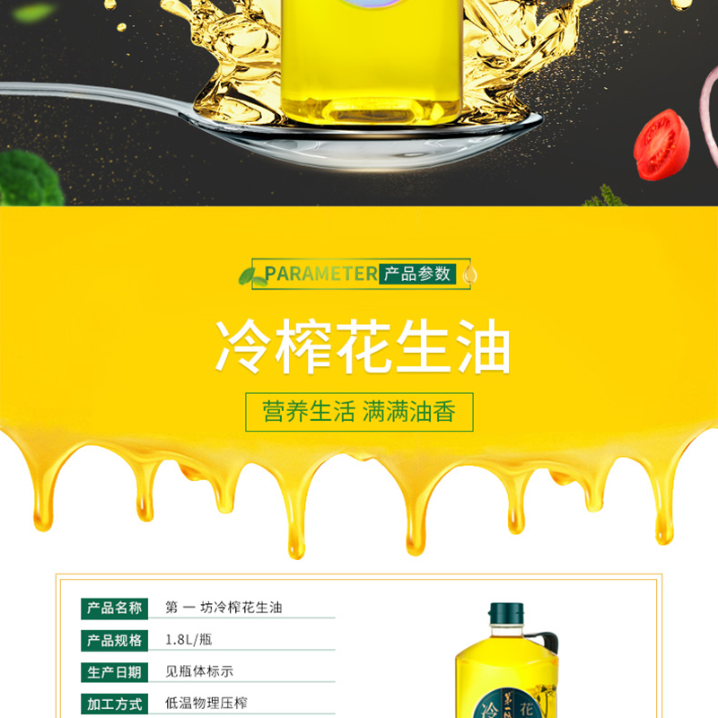 第一坊 冷榨花生油 1.8L 低油烟 食用油 黄色(单位:桶)